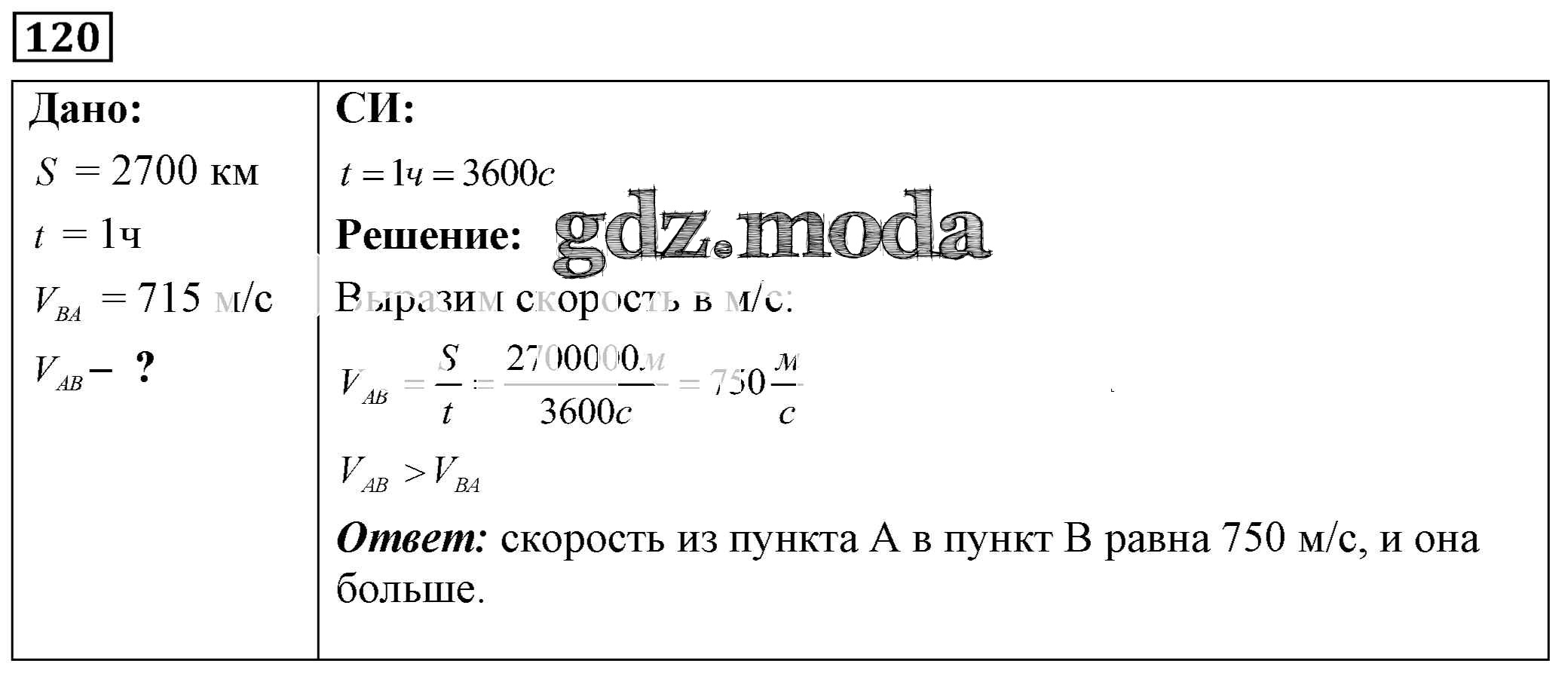 ОТВЕТ на задание № 120 Сборник задач по Физике 7-9 класс Лукашик