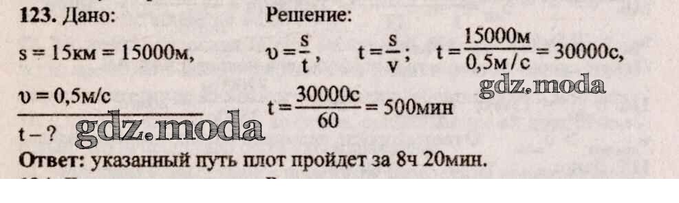ОТВЕТ на задание № 123 Сборник задач по Физике 7-9 класс Лукашик