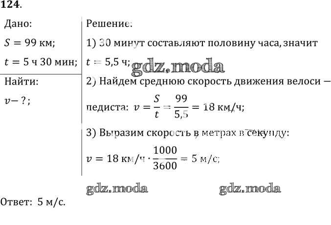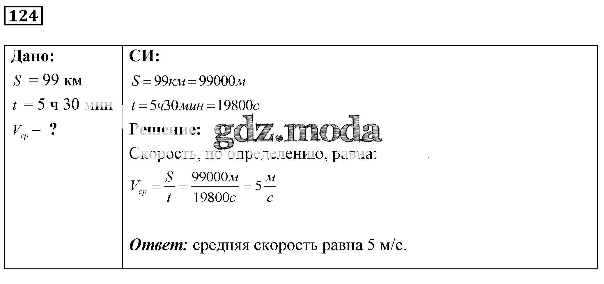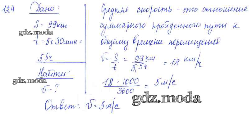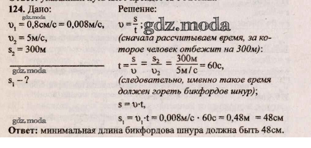 ОТВЕТ на задание № 124 Сборник задач по Физике 7-9 класс Лукашик