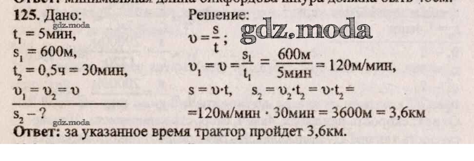 ОТВЕТ на задание № 125 Сборник задач по Физике 7-9 класс Лукашик