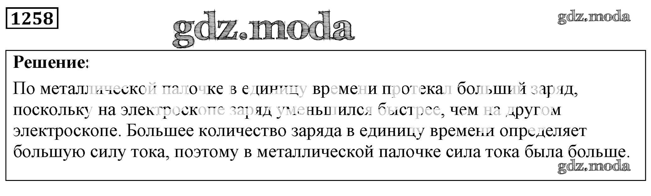 ОТВЕТ на задание № 1258 Сборник задач по Физике 7-9 класс Лукашик