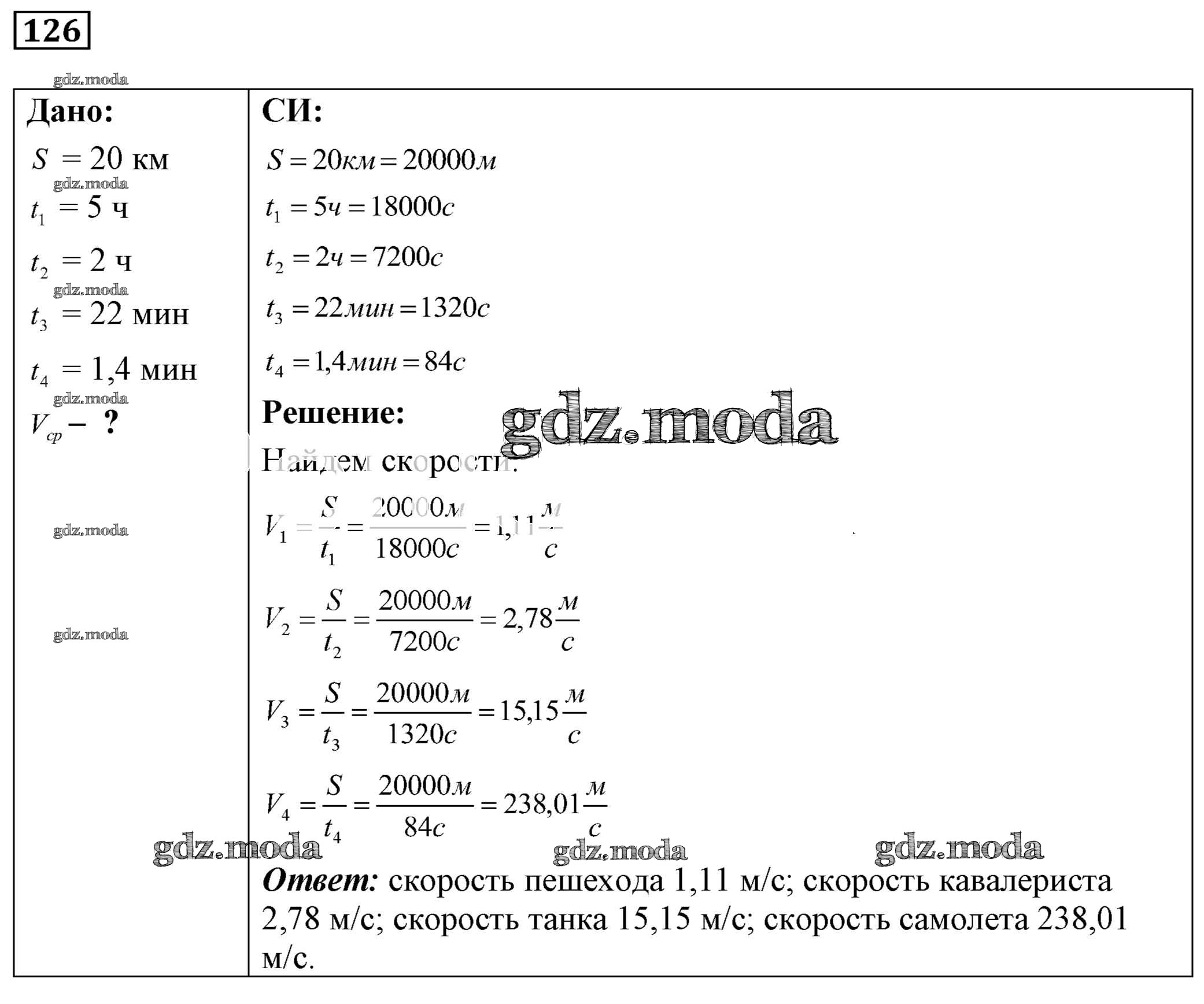 ОТВЕТ на задание № 126 Сборник задач по Физике 7-9 класс Лукашик