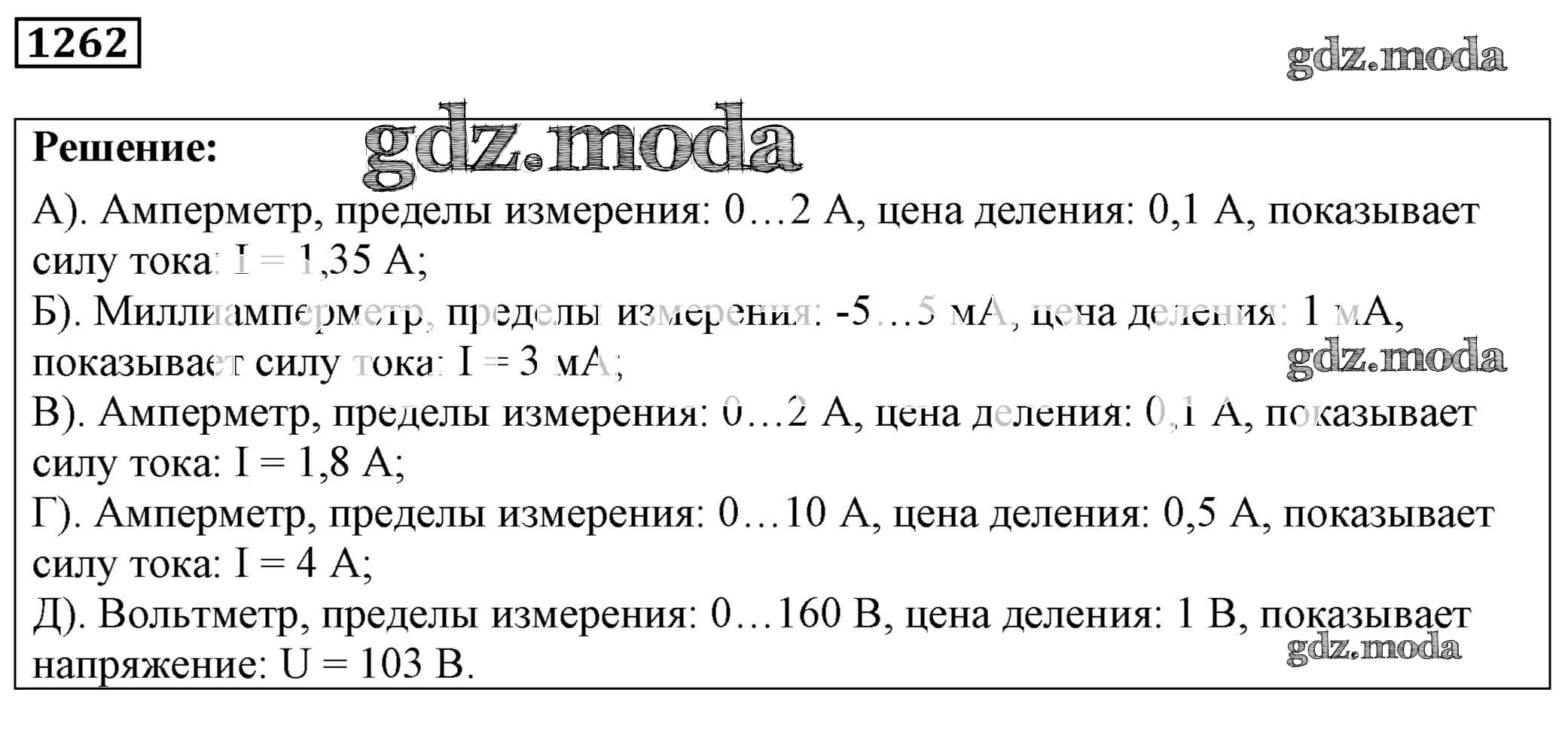 ОТВЕТ на задание № 1262 Сборник задач по Физике 7-9 класс Лукашик