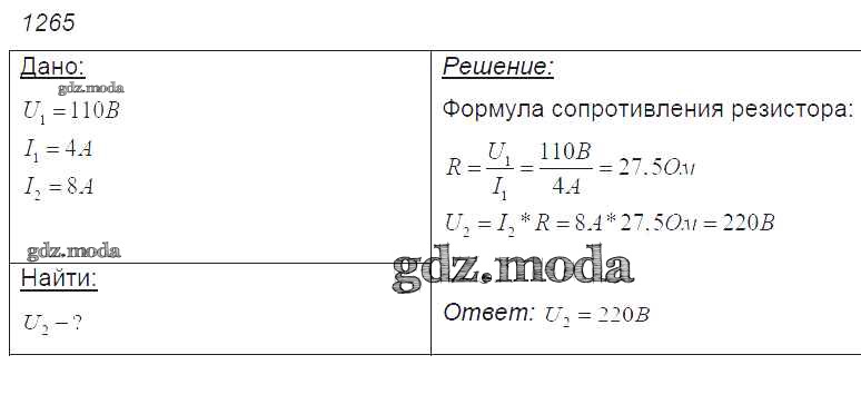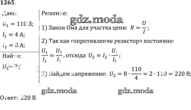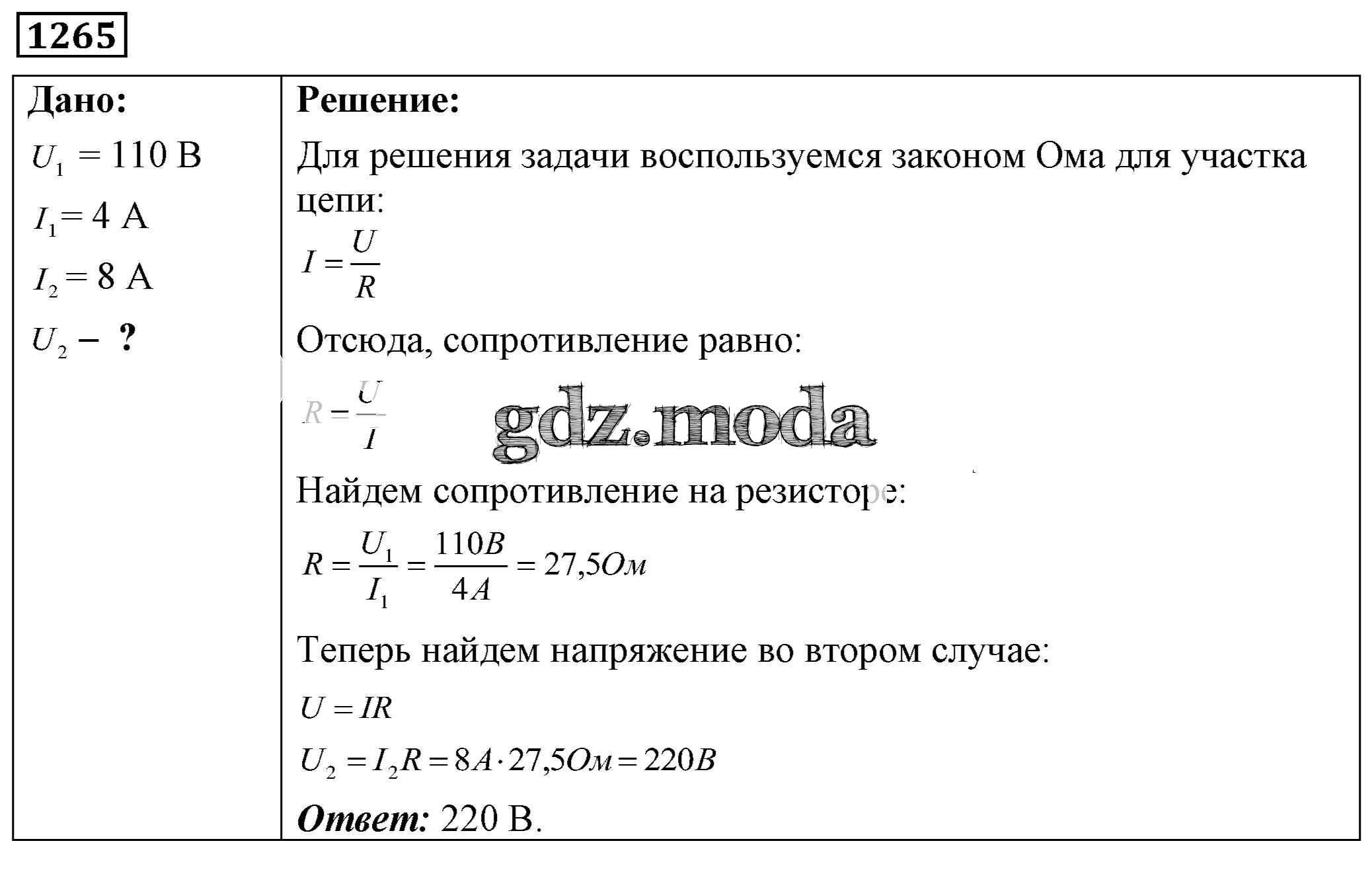 ОТВЕТ на задание № 1265 Сборник задач по Физике 7-9 класс Лукашик