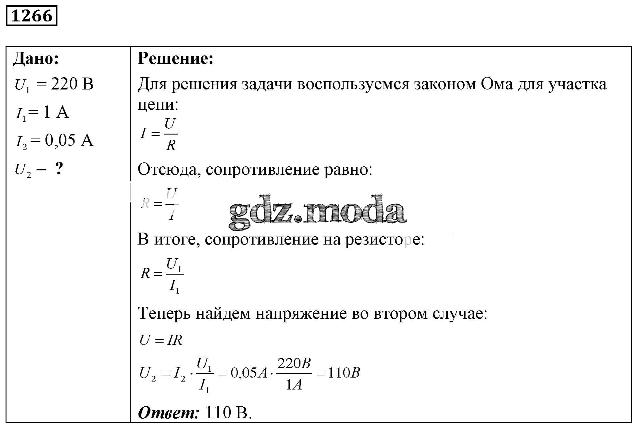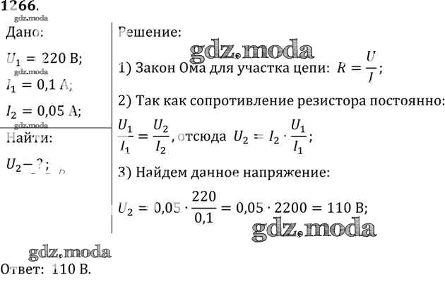 ОТВЕТ на задание № 1266 Сборник задач по Физике 7-9 класс Лукашик