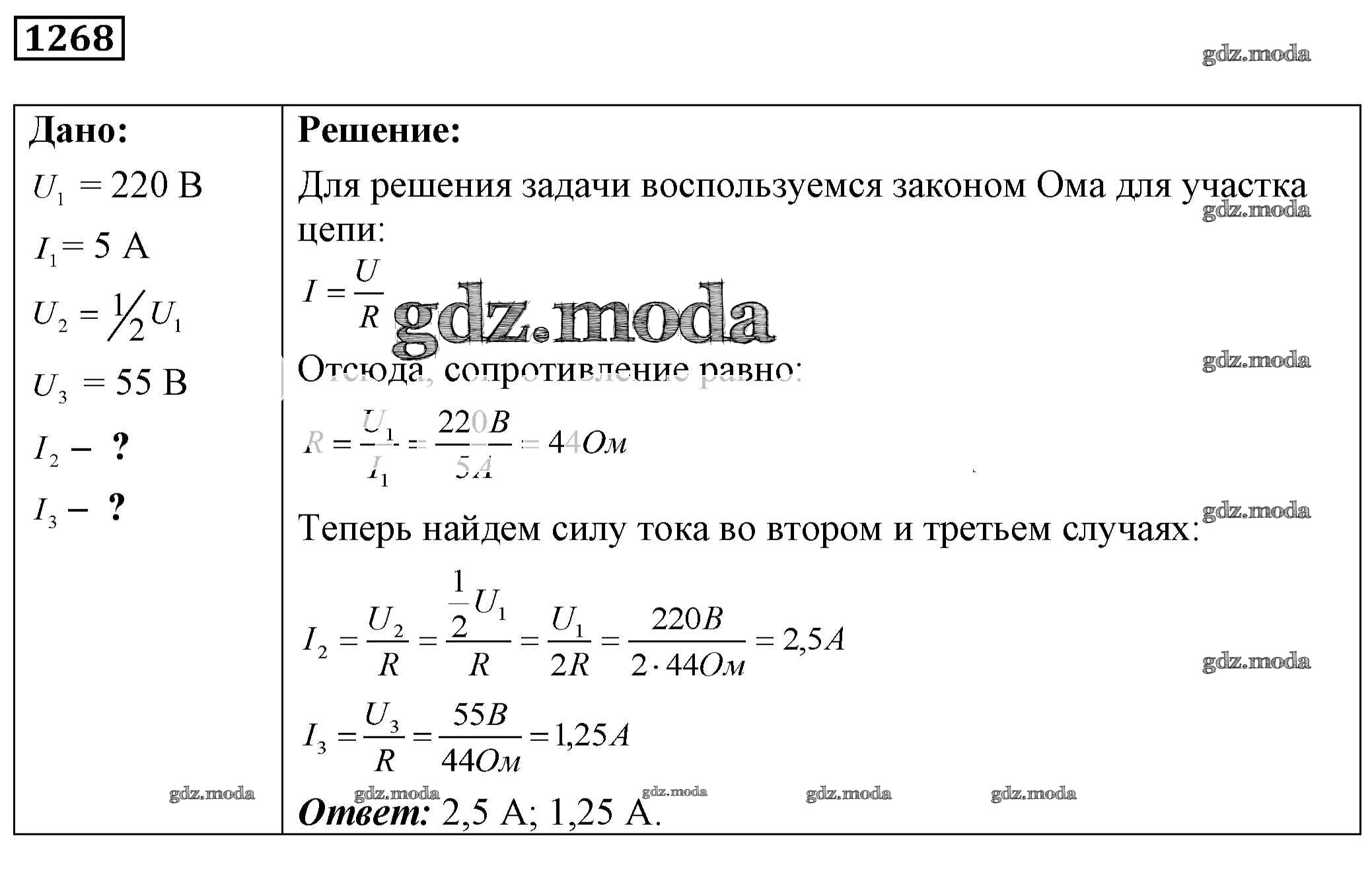 ОТВЕТ на задание № 1268 Сборник задач по Физике 7-9 класс Лукашик