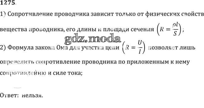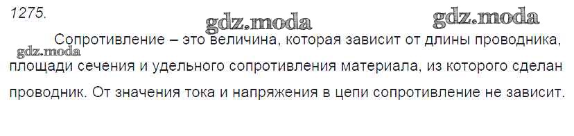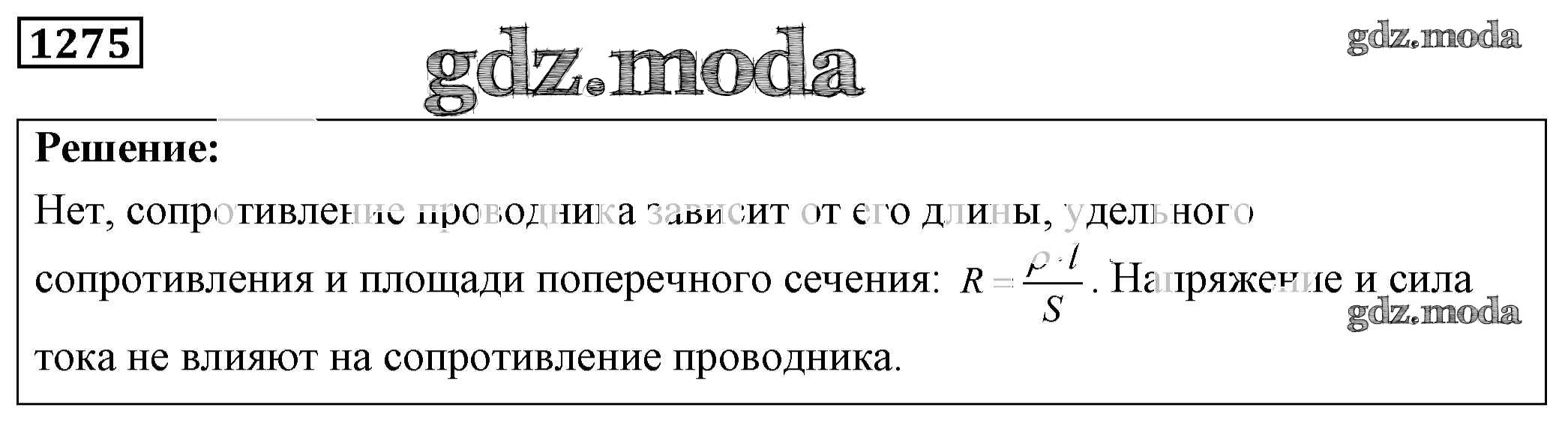 ОТВЕТ на задание № 1275 Сборник задач по Физике 7-9 класс Лукашик