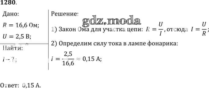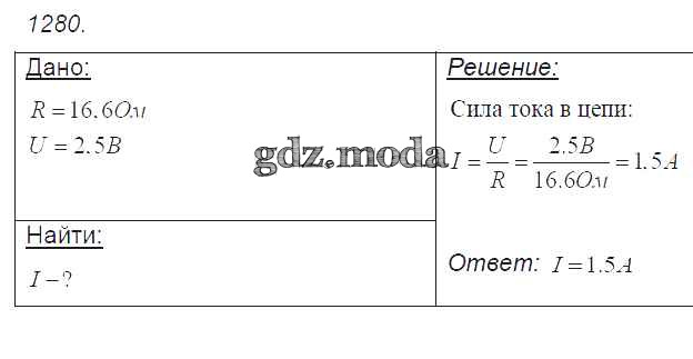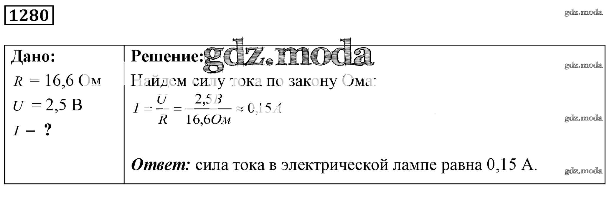 ОТВЕТ на задание № 1280 Сборник задач по Физике 7-9 класс Лукашик
