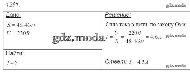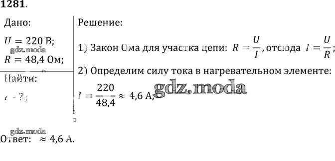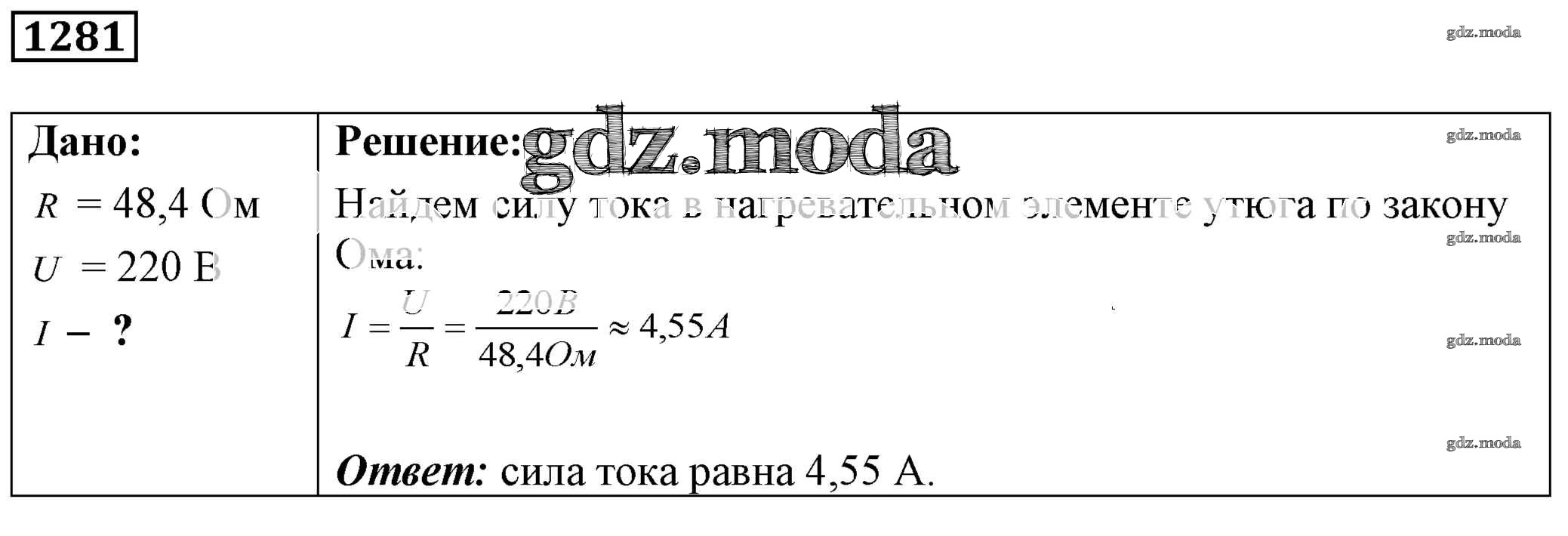 ОТВЕТ на задание № 1281 Сборник задач по Физике 7-9 класс Лукашик