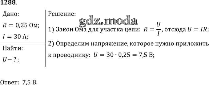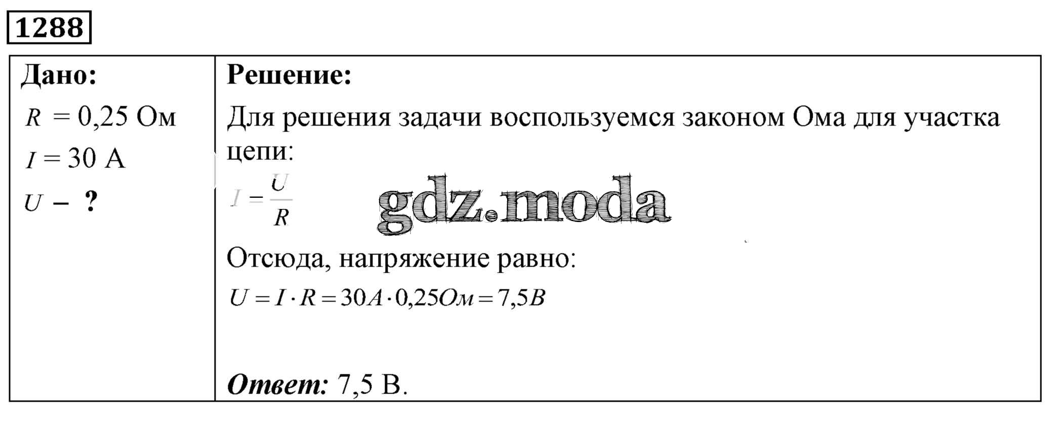 ОТВЕТ на задание № 1288 Сборник задач по Физике 7-9 класс Лукашик