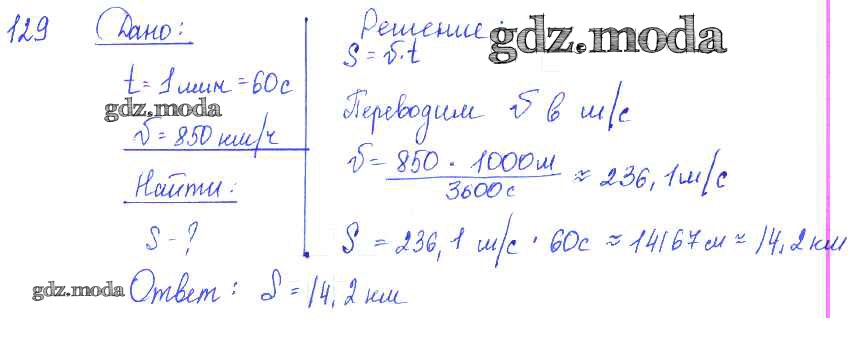 ОТВЕТ на задание № 129 Сборник задач по Физике 7-9 класс Лукашик