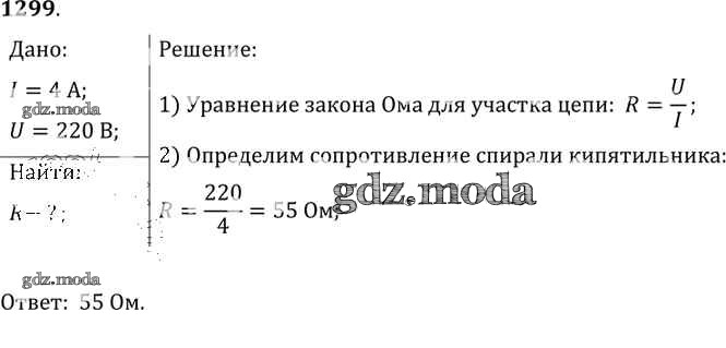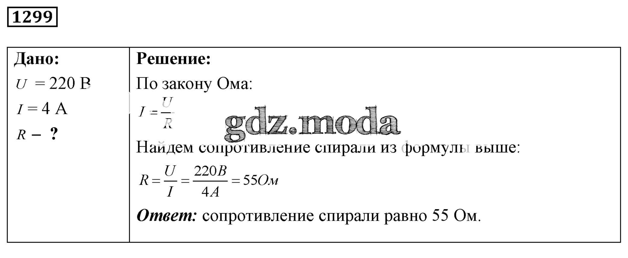 ОТВЕТ на задание № 1299 Сборник задач по Физике 7-9 класс Лукашик