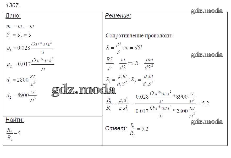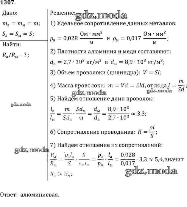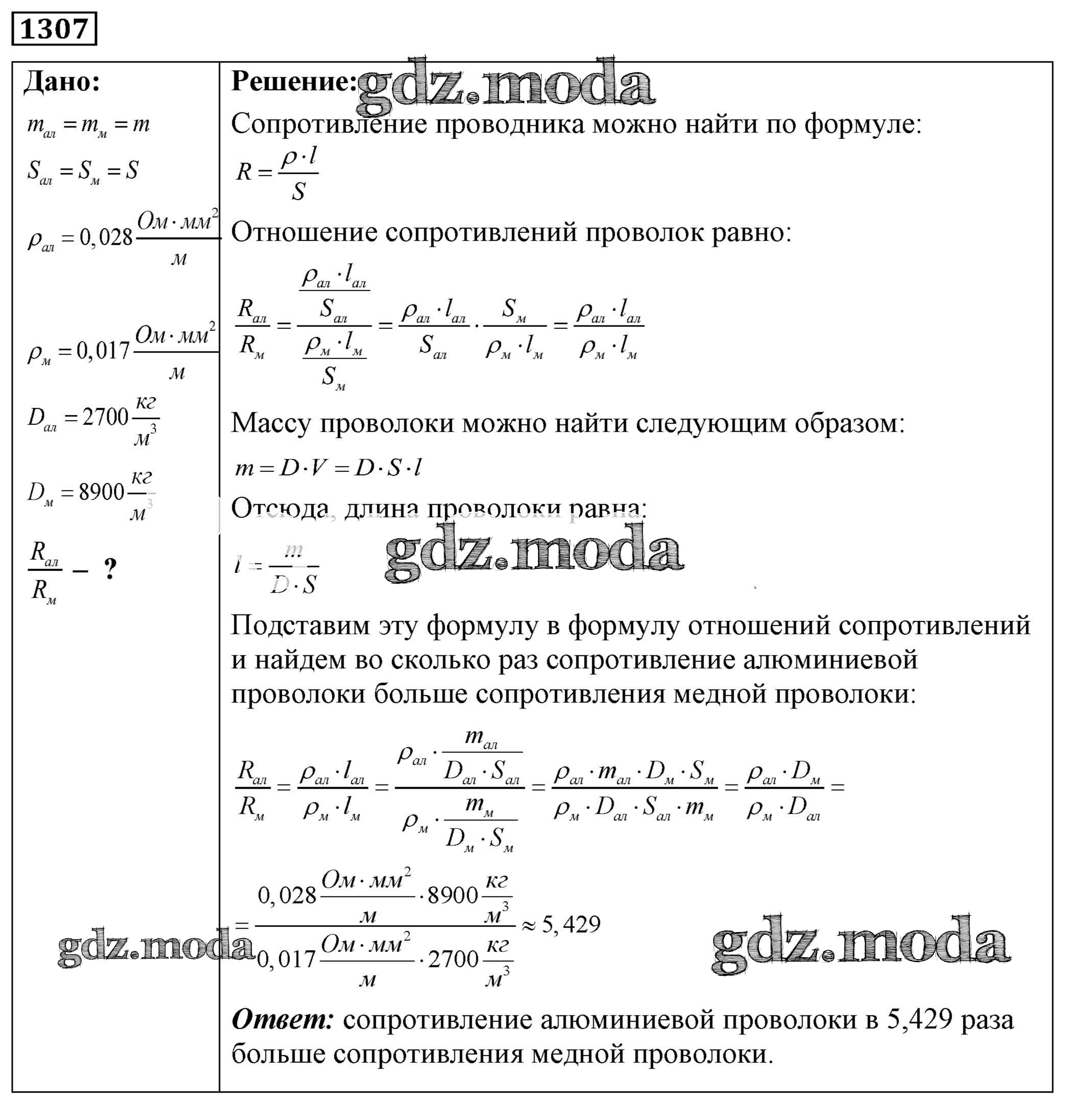 ОТВЕТ на задание № 1307 Сборник задач по Физике 7-9 класс Лукашик