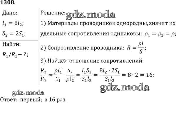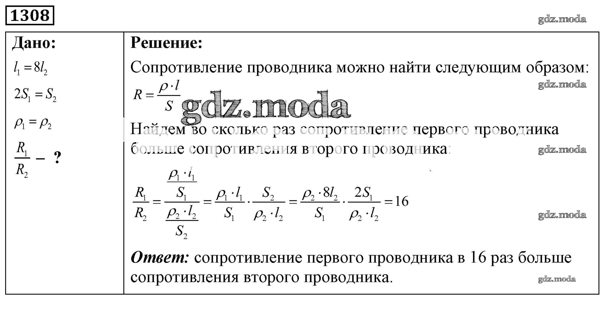 ОТВЕТ на задание № 1308 Сборник задач по Физике 7-9 класс Лукашик