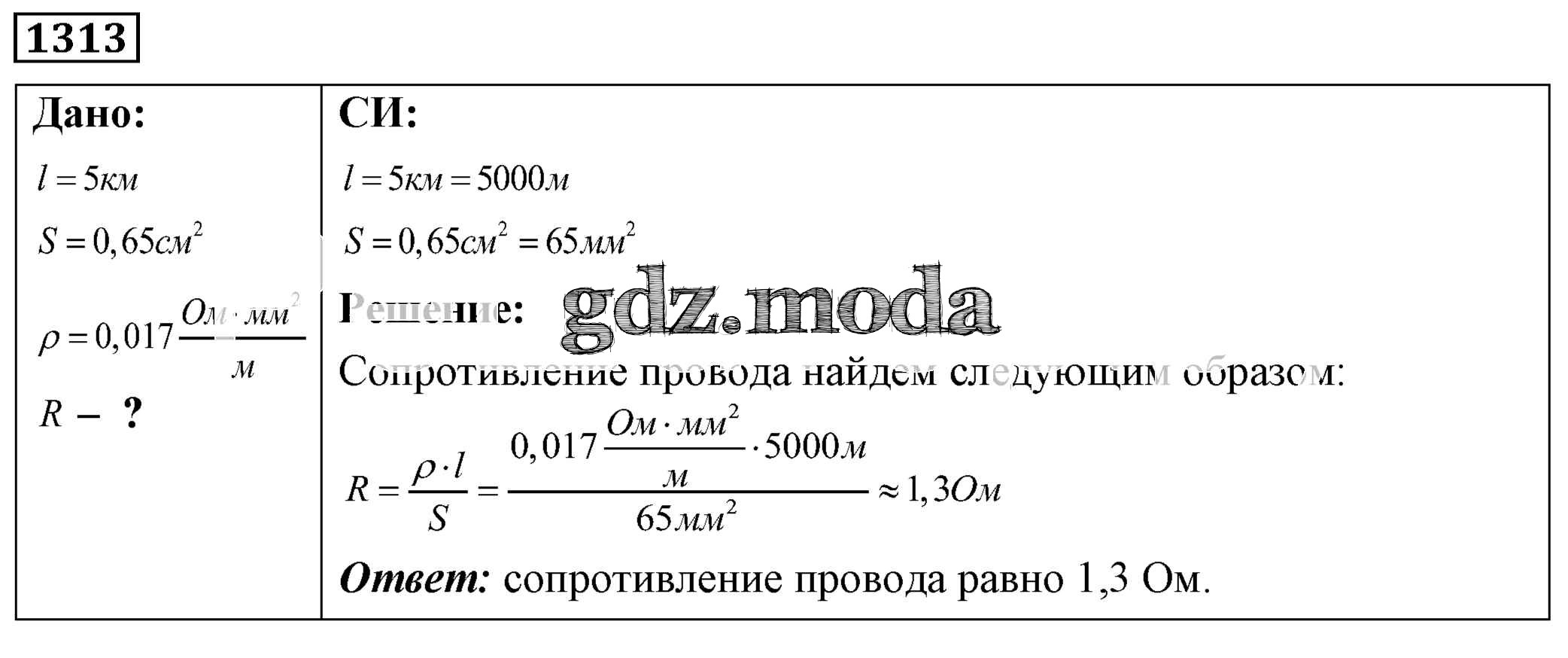 ОТВЕТ на задание № 1313 Сборник задач по Физике 7-9 класс Лукашик