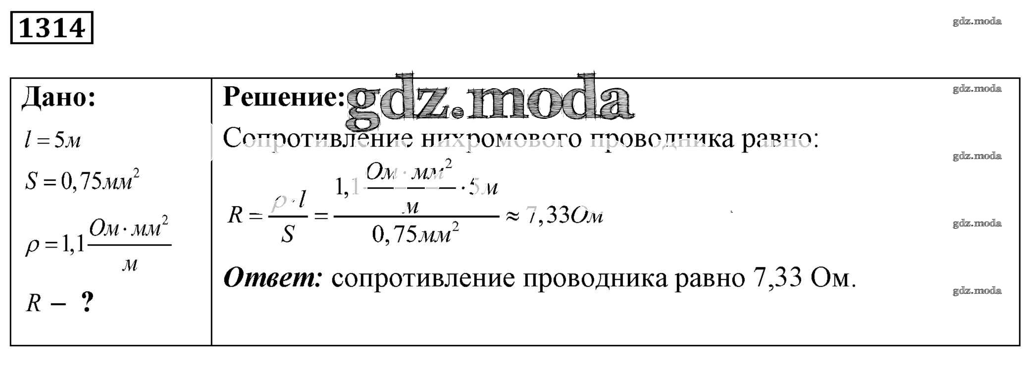 ОТВЕТ на задание № 1314 Сборник задач по Физике 7-9 класс Лукашик