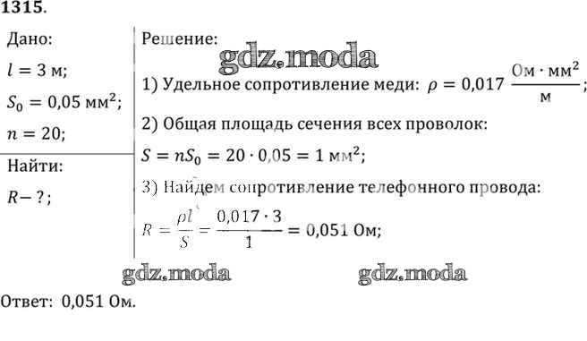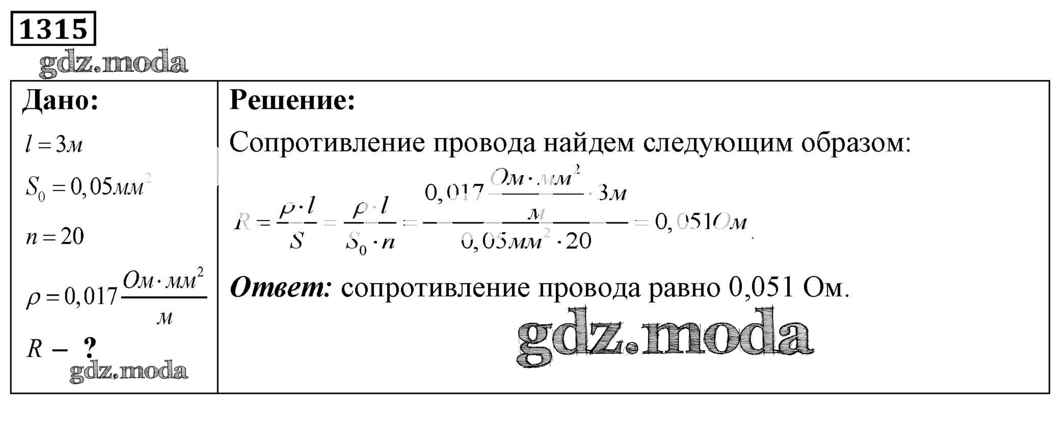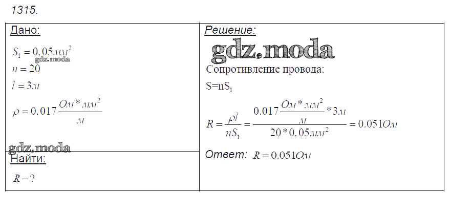 ОТВЕТ на задание № 1315 Сборник задач по Физике 7-9 класс Лукашик