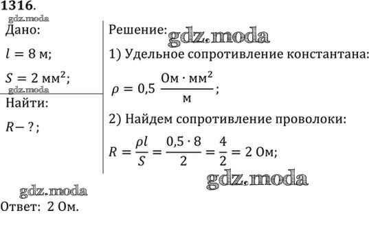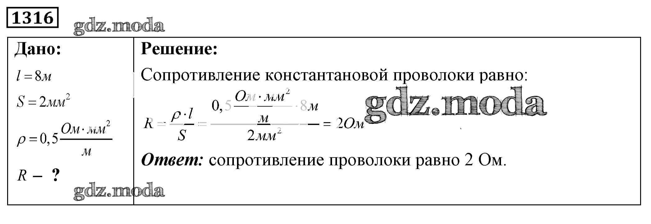 ОТВЕТ на задание № 1316 Сборник задач по Физике 7-9 класс Лукашик