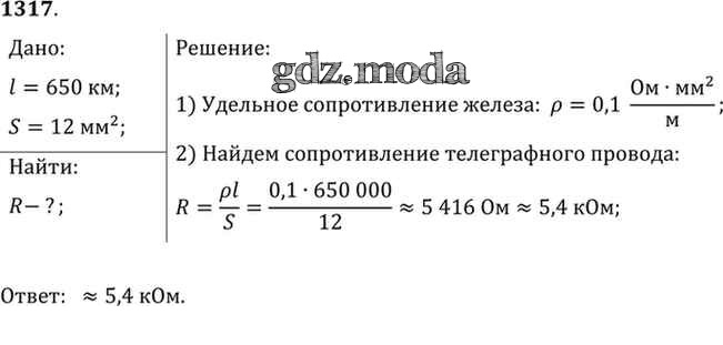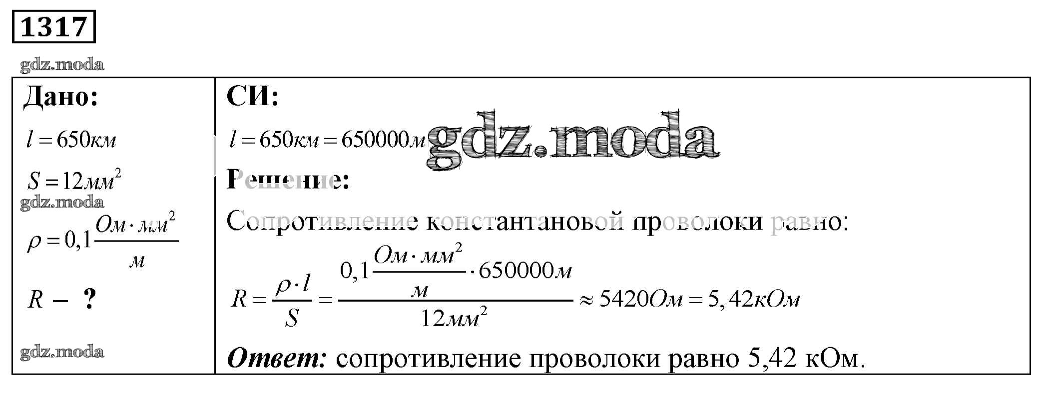 ОТВЕТ на задание № 1317 Сборник задач по Физике 7-9 класс Лукашик