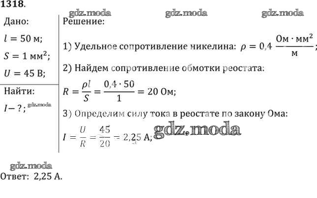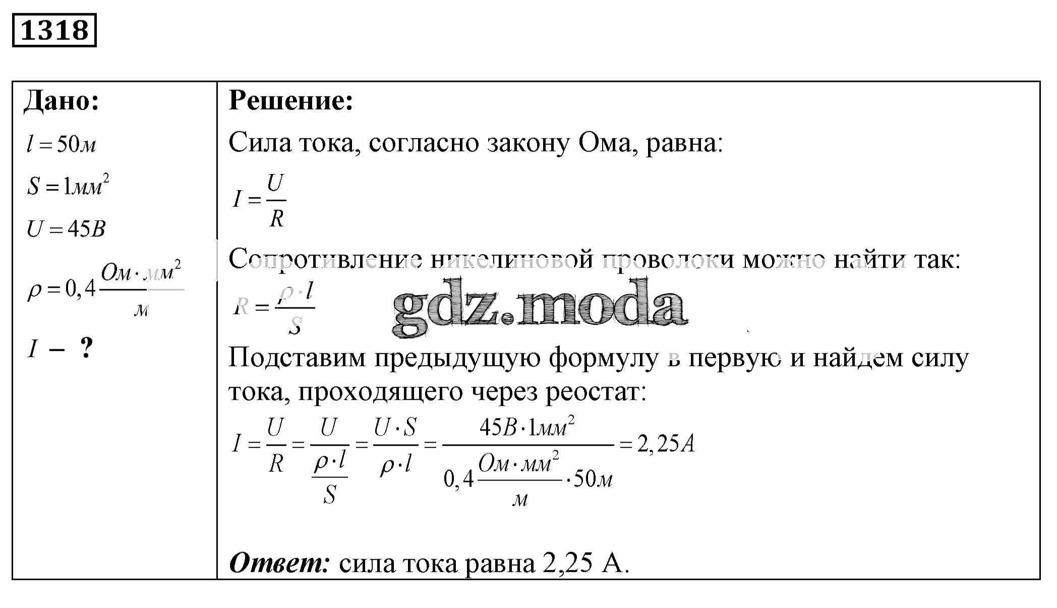ОТВЕТ на задание № 1318 Сборник задач по Физике 7-9 класс Лукашик