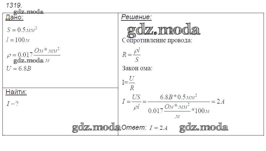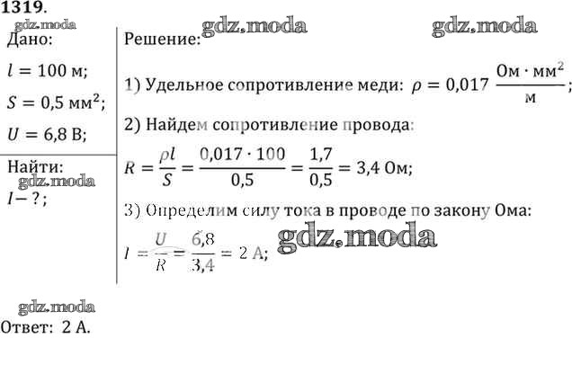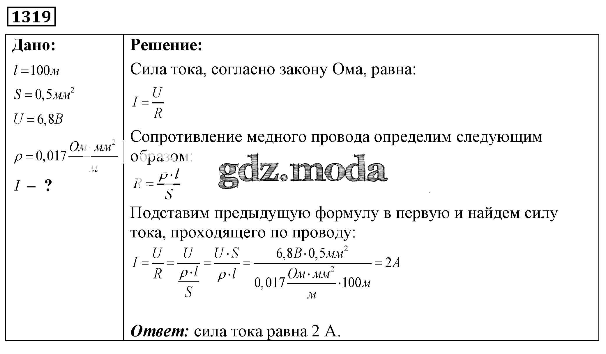 ОТВЕТ на задание № 1319 Сборник задач по Физике 7-9 класс Лукашик
