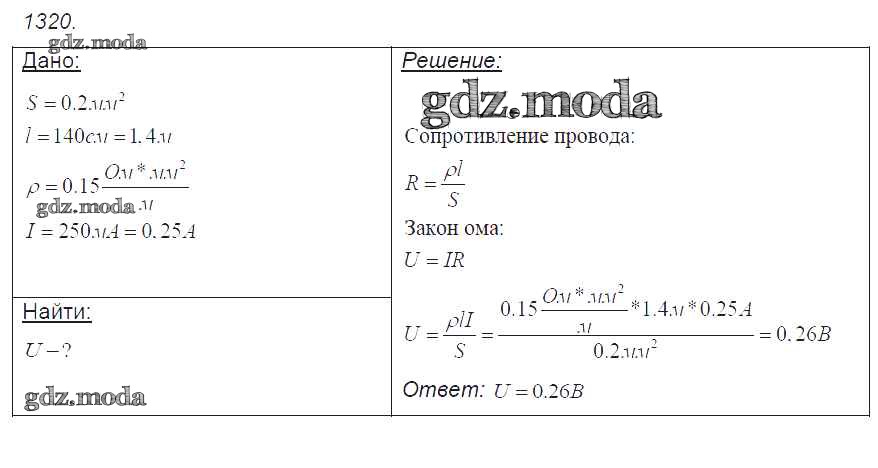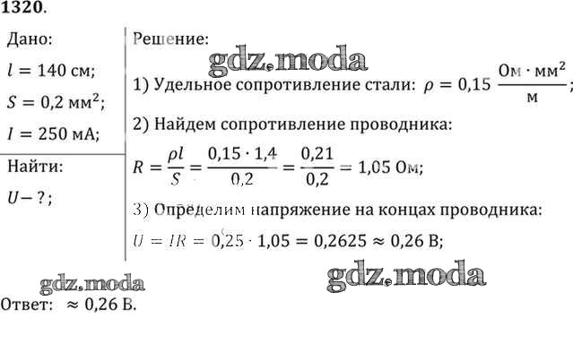 ОТВЕТ на задание № 1320 Сборник задач по Физике 7-9 класс Лукашик