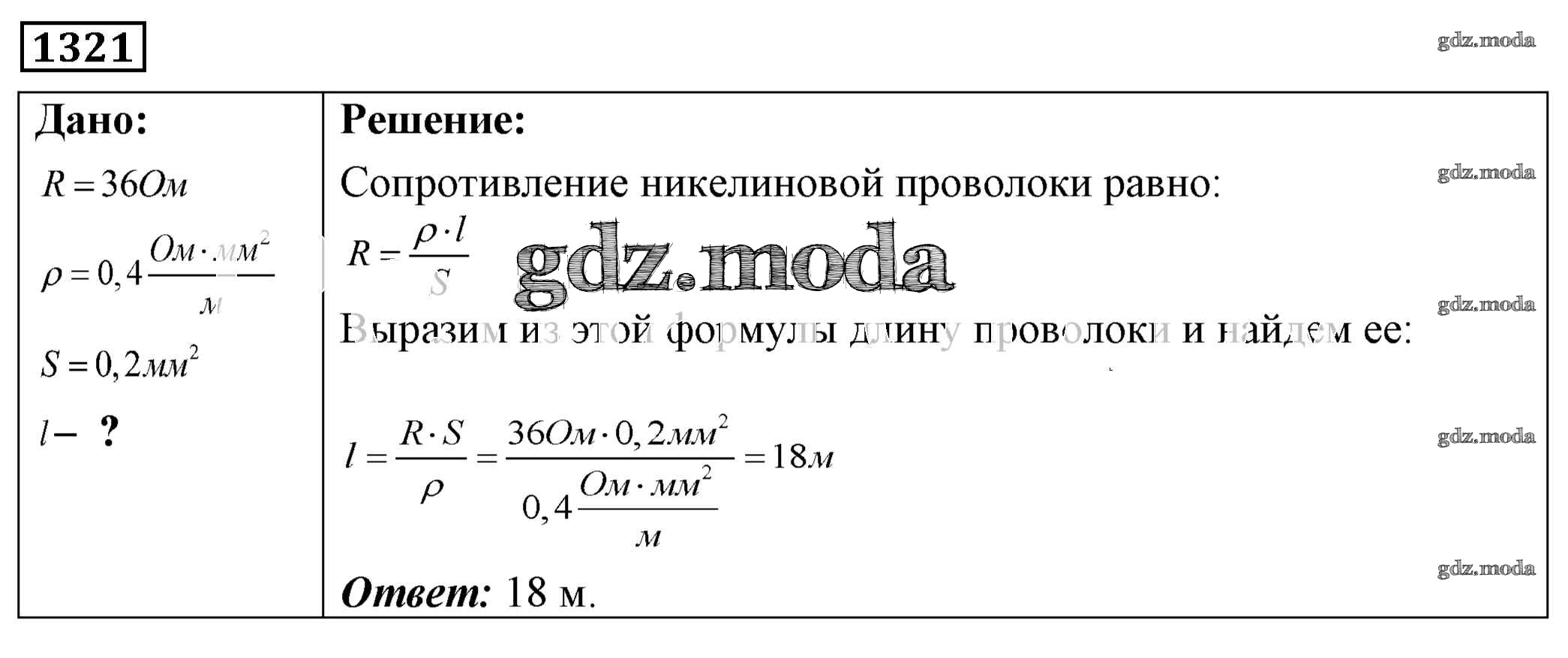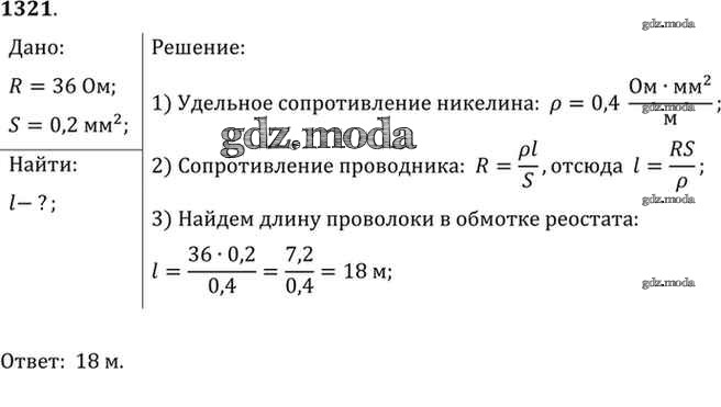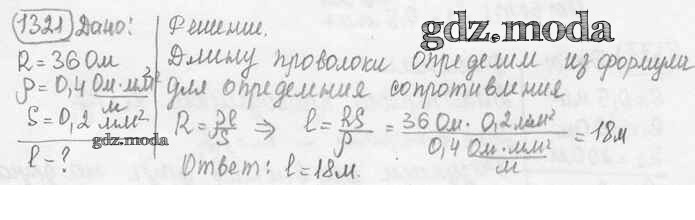 ОТВЕТ на задание № 1321 Сборник задач по Физике 7-9 класс Лукашик