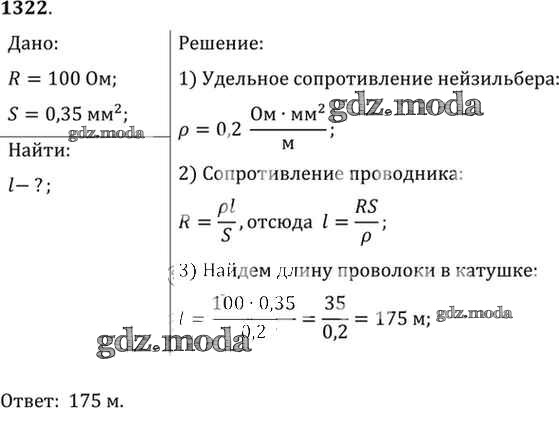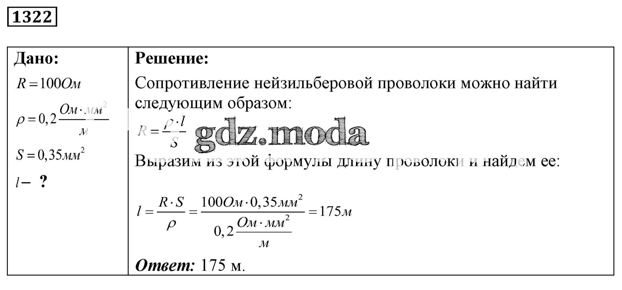 ОТВЕТ на задание № 1322 Сборник задач по Физике 7-9 класс Лукашик