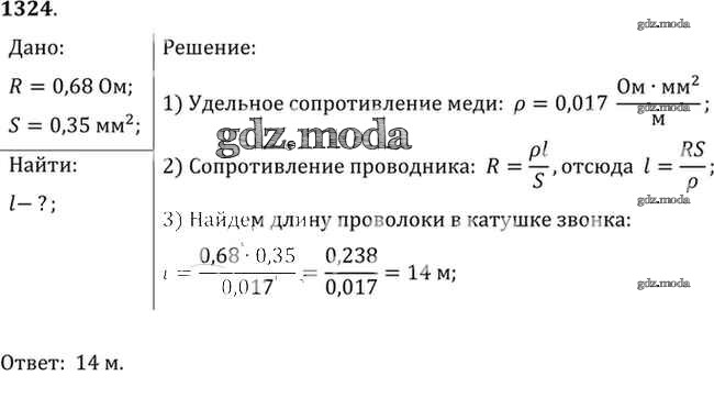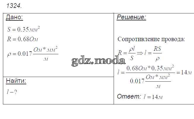 ОТВЕТ на задание № 1324 Сборник задач по Физике 7-9 класс Лукашик