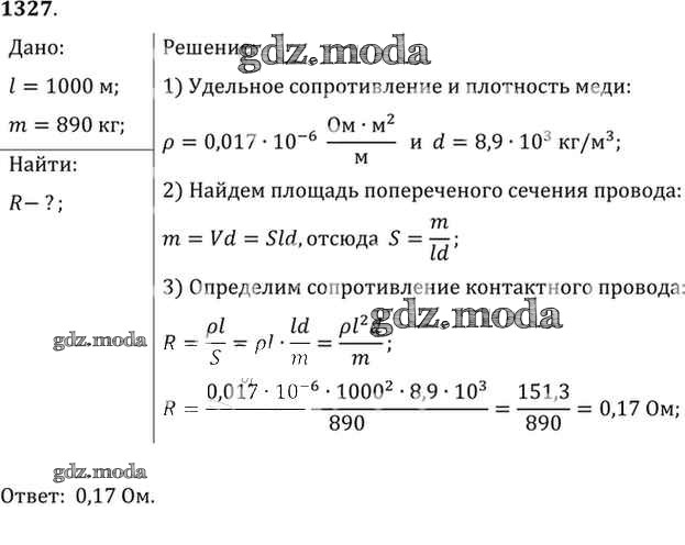 ОТВЕТ на задание № 1327 Сборник задач по Физике 7-9 класс Лукашик