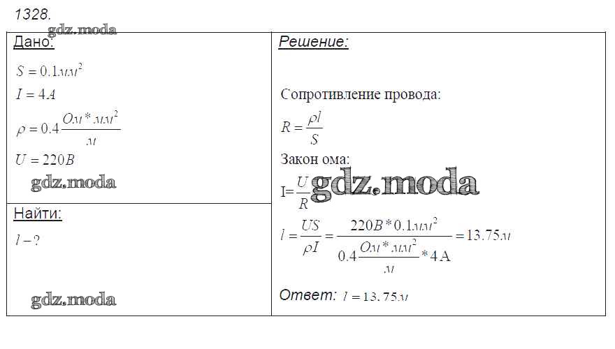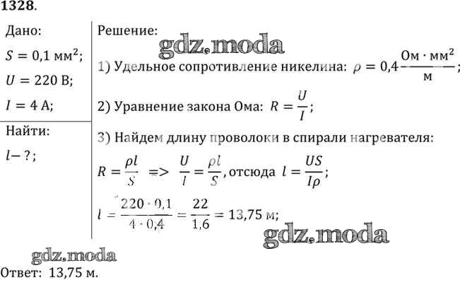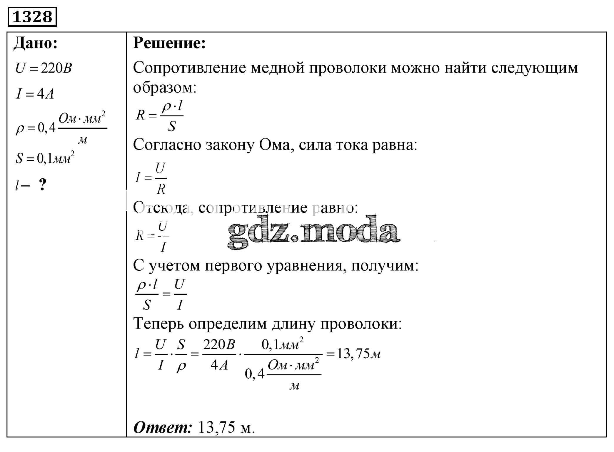 ОТВЕТ на задание № 1328 Сборник задач по Физике 7-9 класс Лукашик