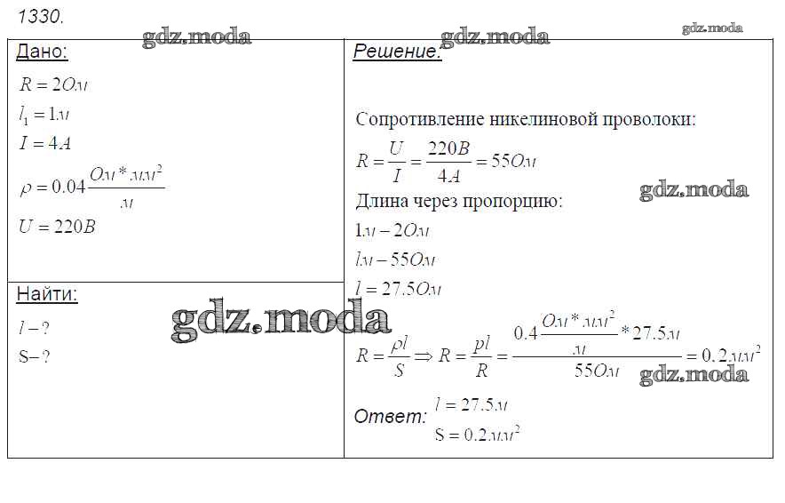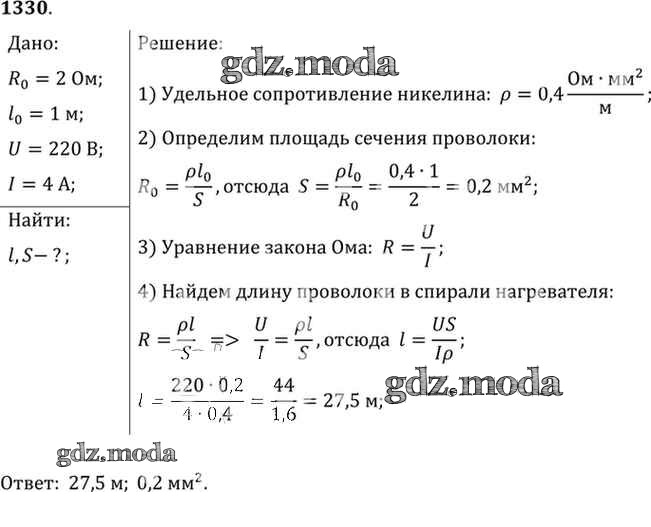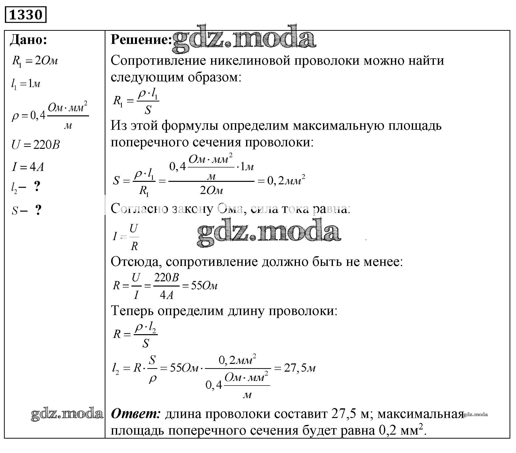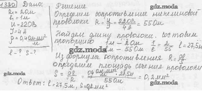 ОТВЕТ на задание № 1330 Сборник задач по Физике 7-9 класс Лукашик