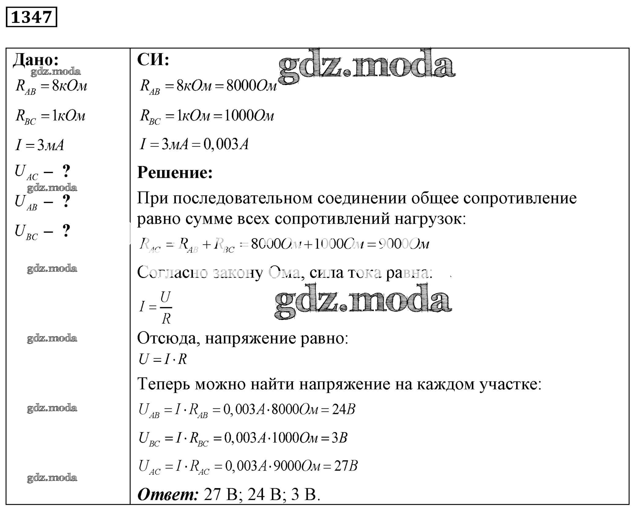 ОТВЕТ на задание № 1347 Сборник задач по Физике 7-9 класс Лукашик