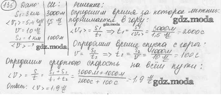 ОТВЕТ на задание № 135 Сборник задач по Физике 7-9 класс Лукашик