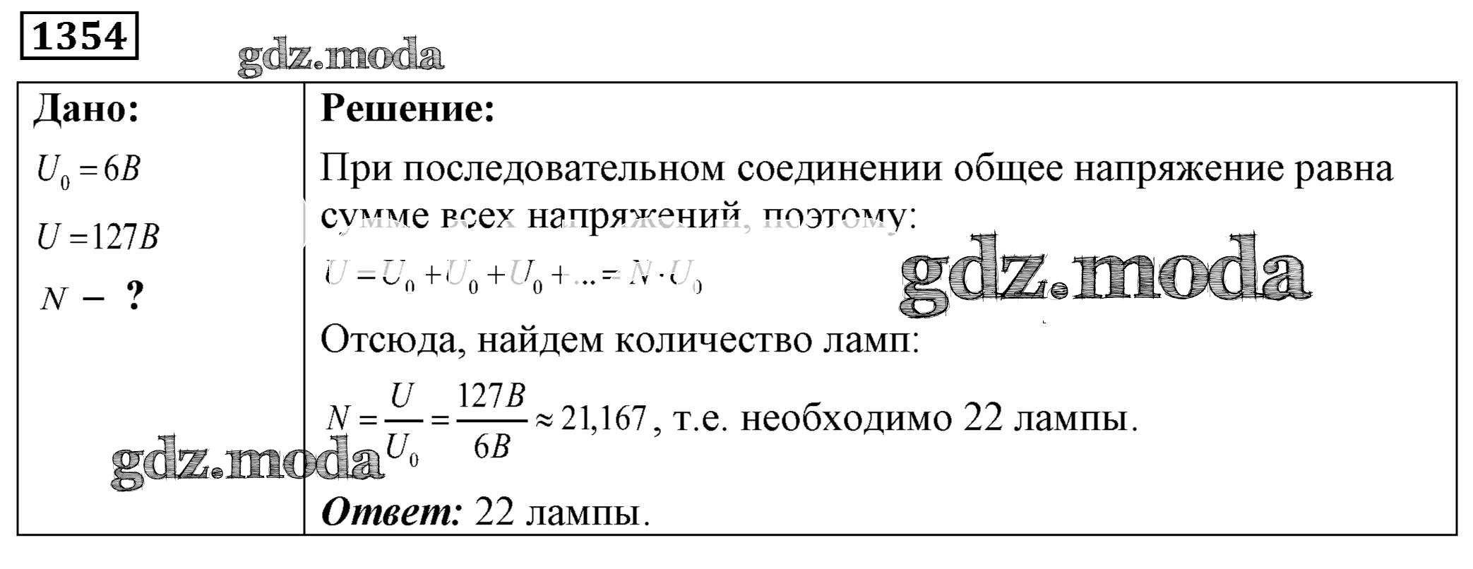 ОТВЕТ на задание № 1354 Сборник задач по Физике 7-9 класс Лукашик