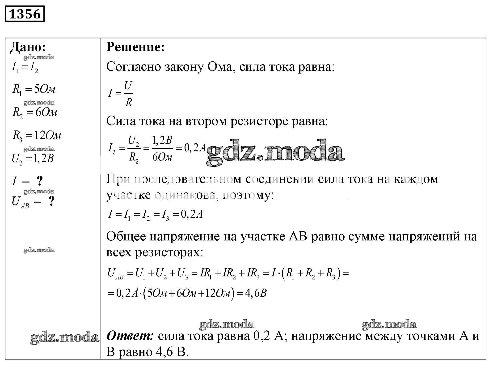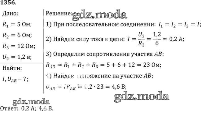ОТВЕТ на задание № 1356 Сборник задач по Физике 7-9 класс Лукашик