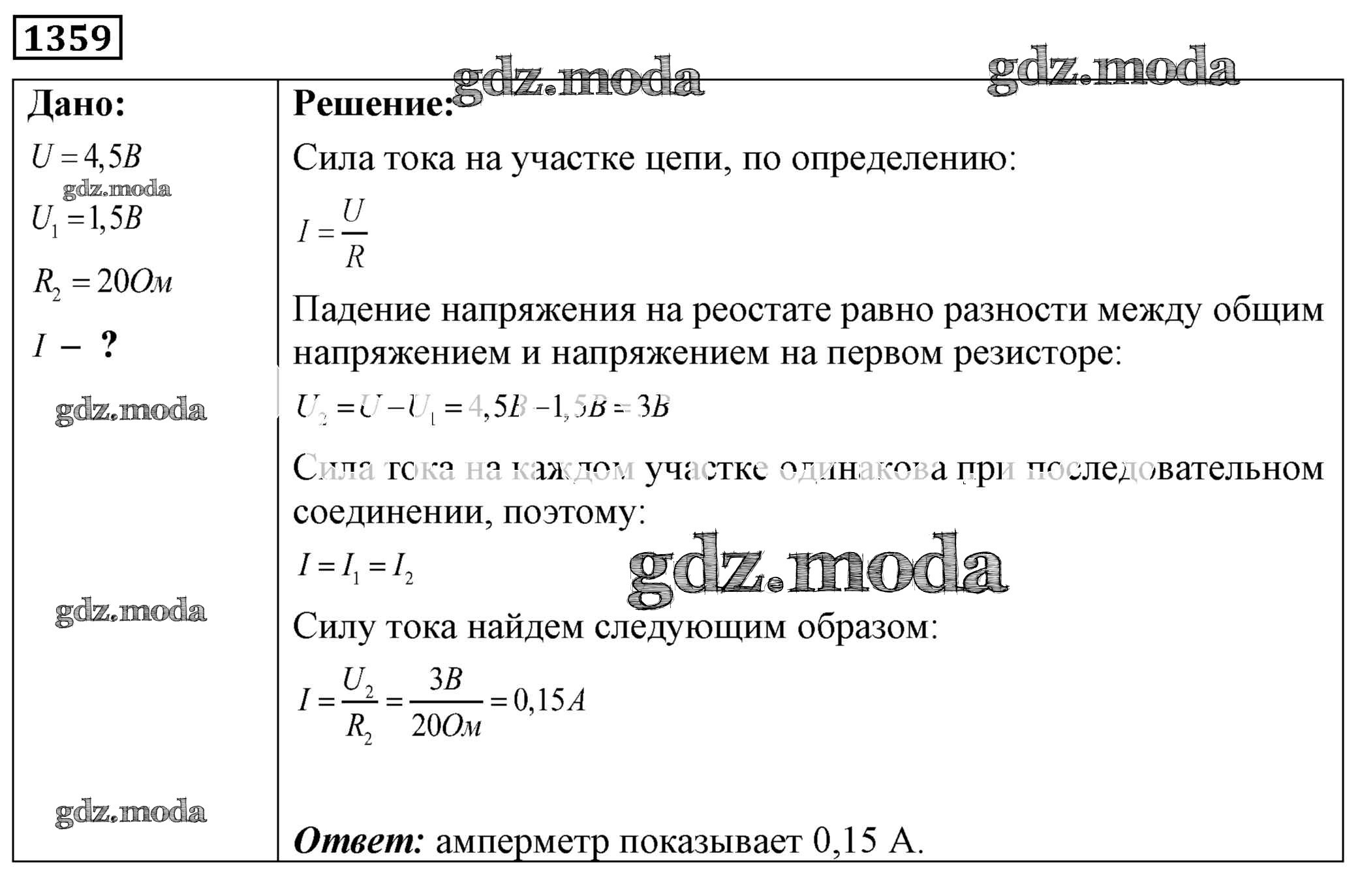 ОТВЕТ на задание № 1359 Сборник задач по Физике 7-9 класс Лукашик