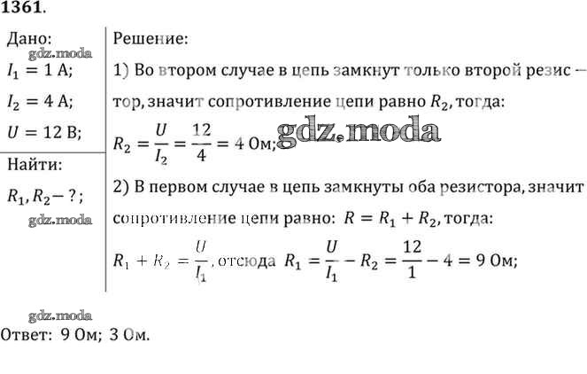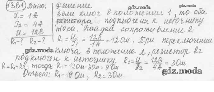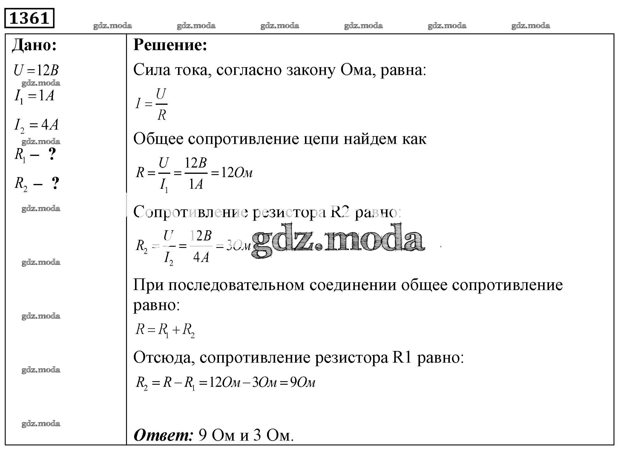 ОТВЕТ на задание № 1361 Сборник задач по Физике 7-9 класс Лукашик