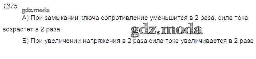 ОТВЕТ на задание № 1375 Сборник задач по Физике 7-9 класс Лукашик