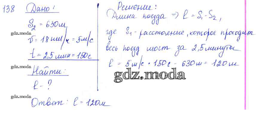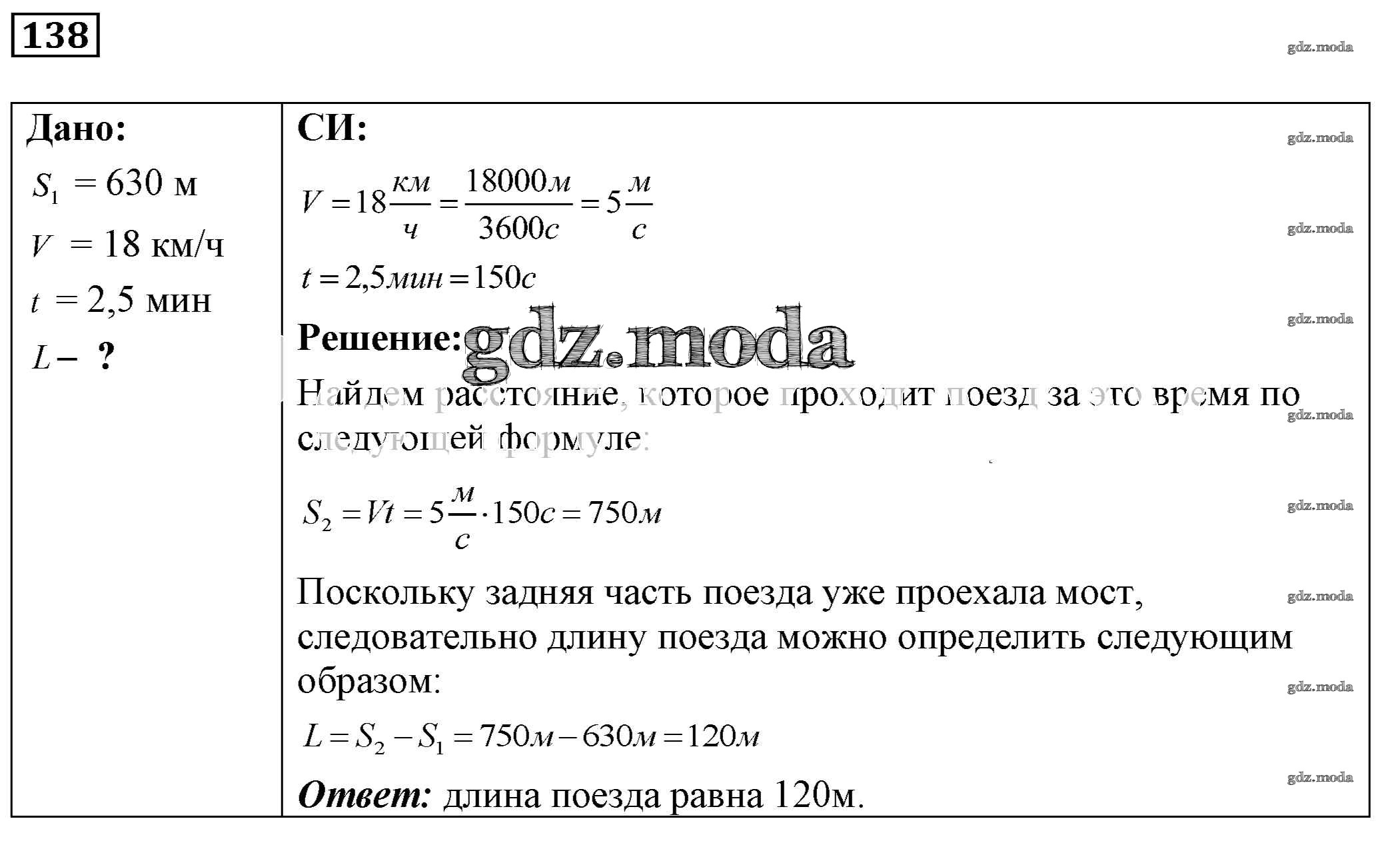 ОТВЕТ на задание № 138 Сборник задач по Физике 7-9 класс Лукашик
