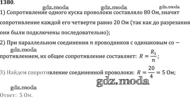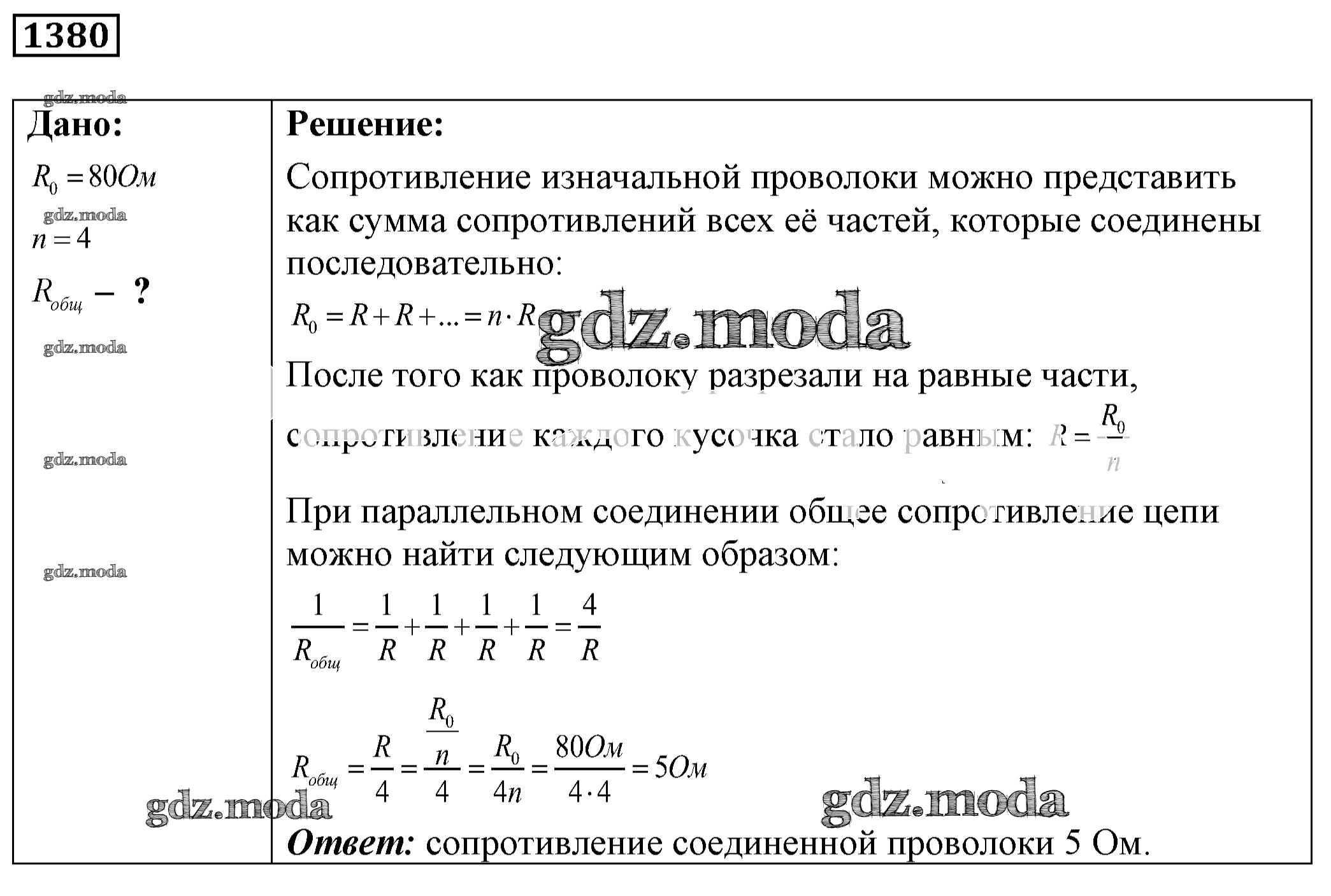 ОТВЕТ на задание № 1380 Сборник задач по Физике 7-9 класс Лукашик