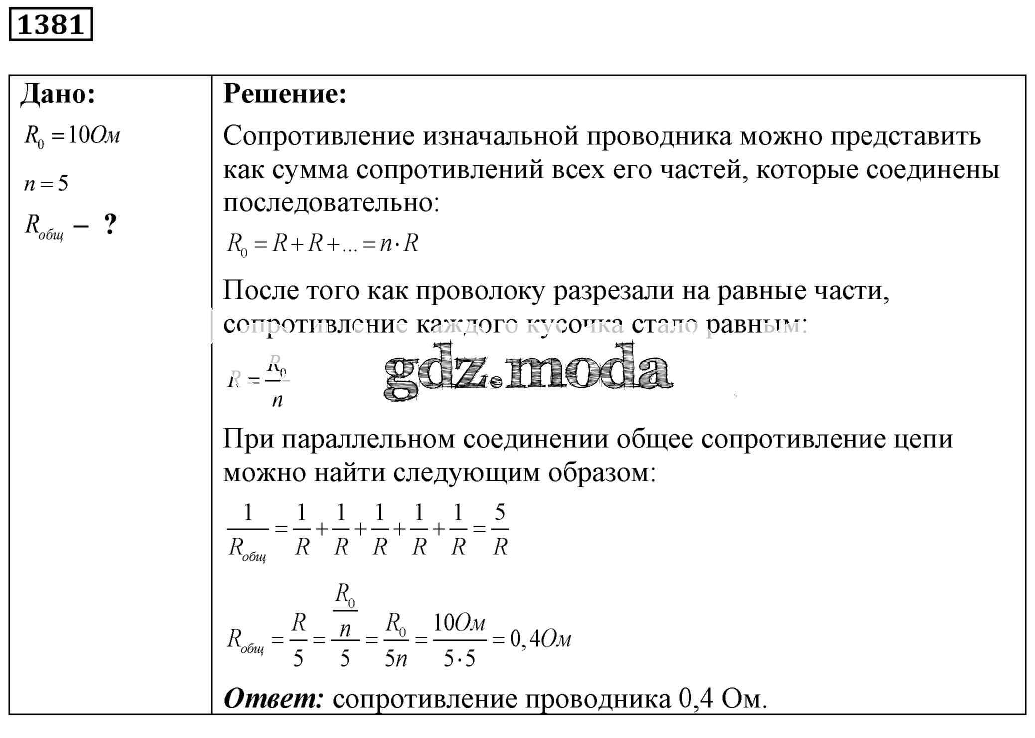 ОТВЕТ на задание № 1381 Сборник задач по Физике 7-9 класс Лукашик