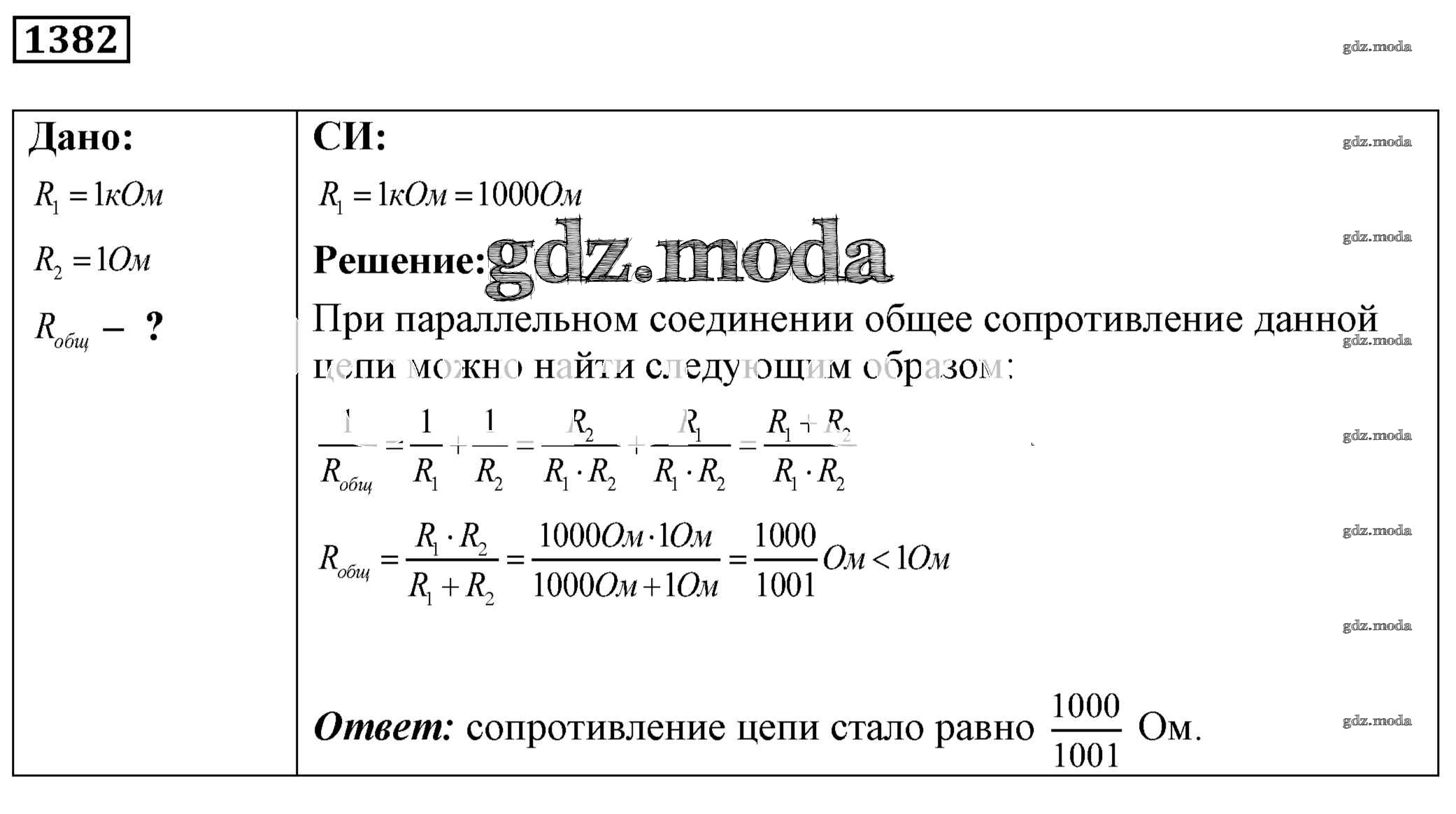 ОТВЕТ на задание № 1382 Сборник задач по Физике 7-9 класс Лукашик