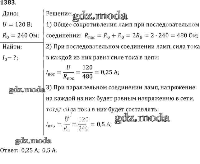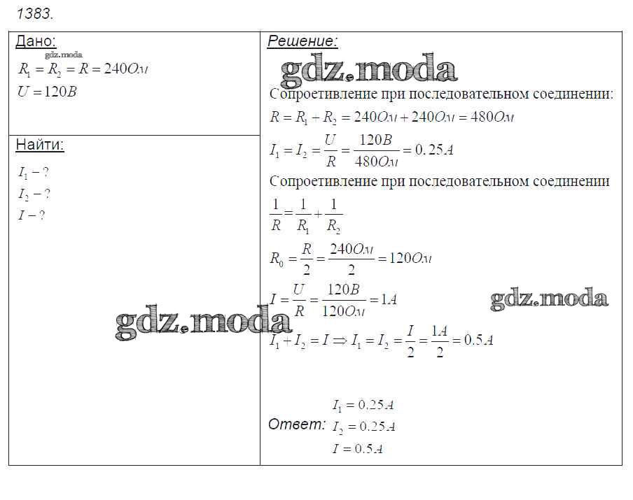 ОТВЕТ на задание № 1383 Сборник задач по Физике 7-9 класс Лукашик