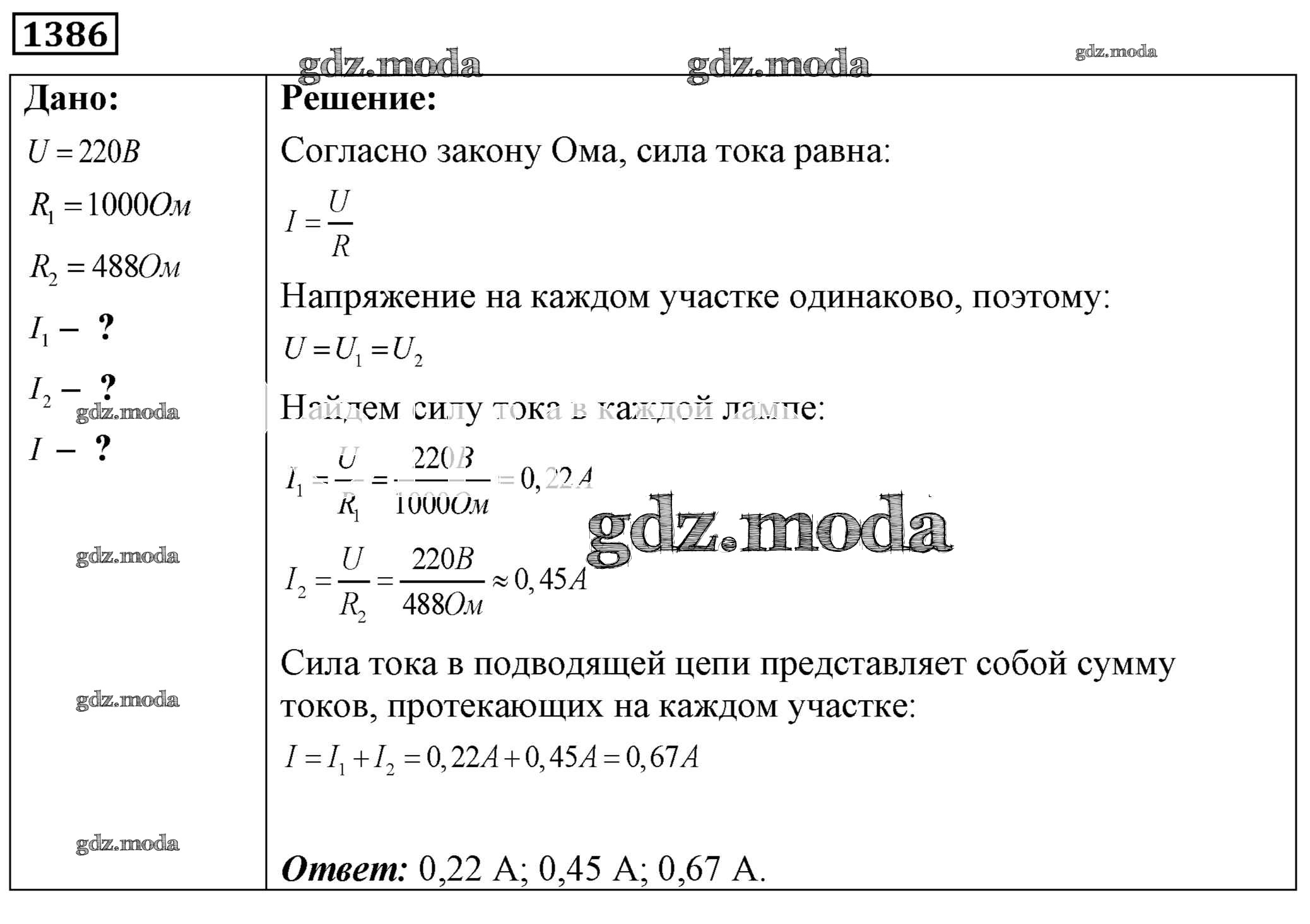 ОТВЕТ на задание № 1386 Сборник задач по Физике 7-9 класс Лукашик