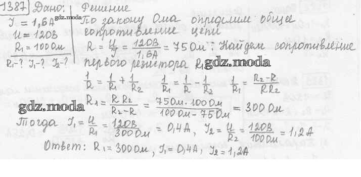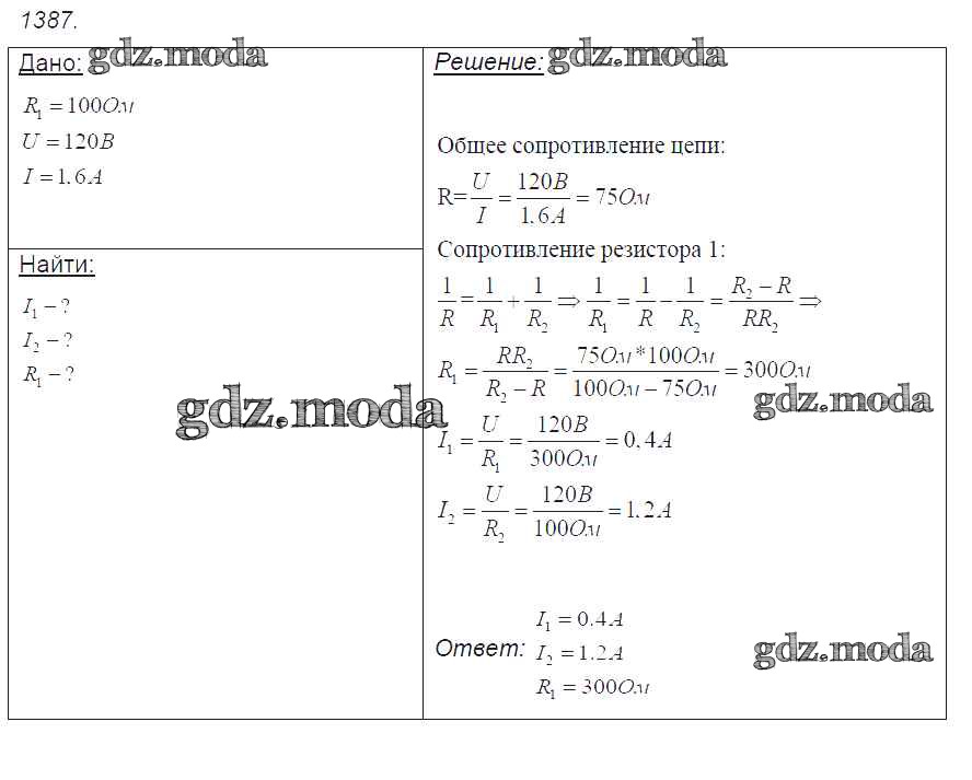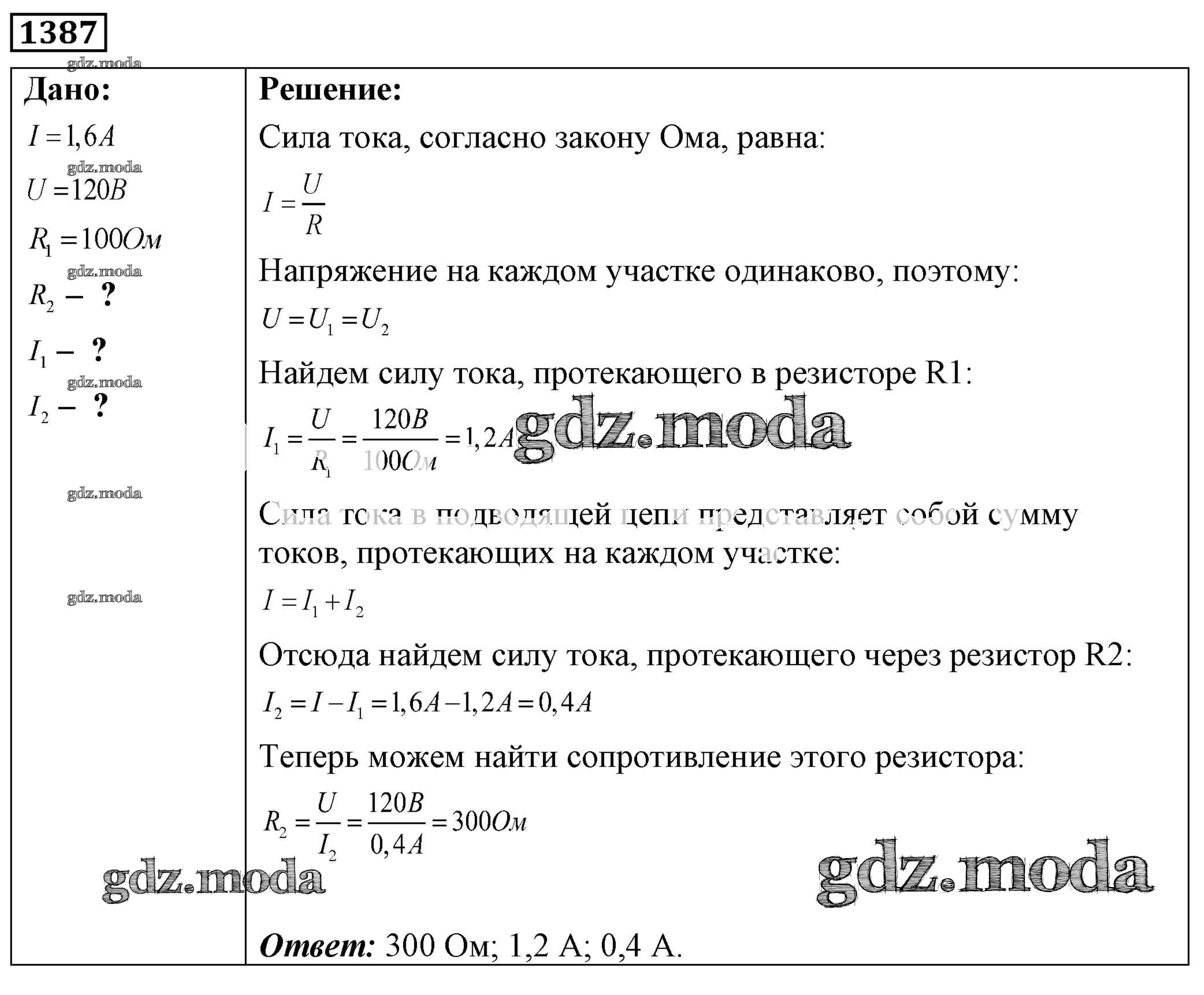 ОТВЕТ на задание № 1387 Сборник задач по Физике 7-9 класс Лукашик