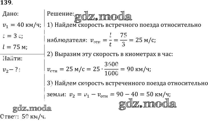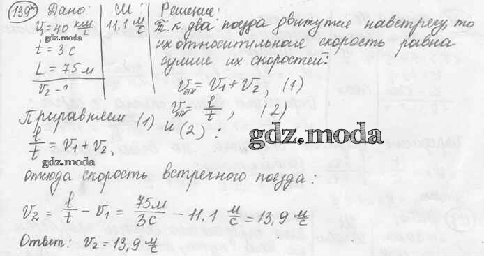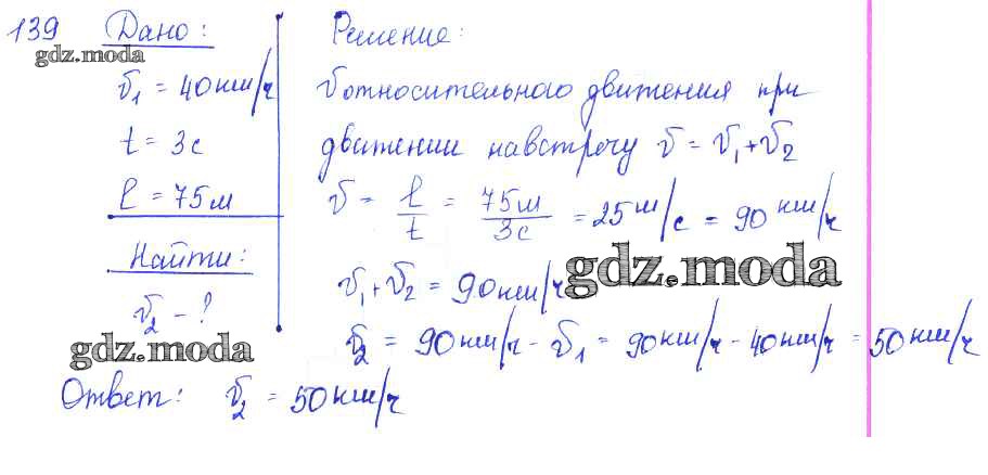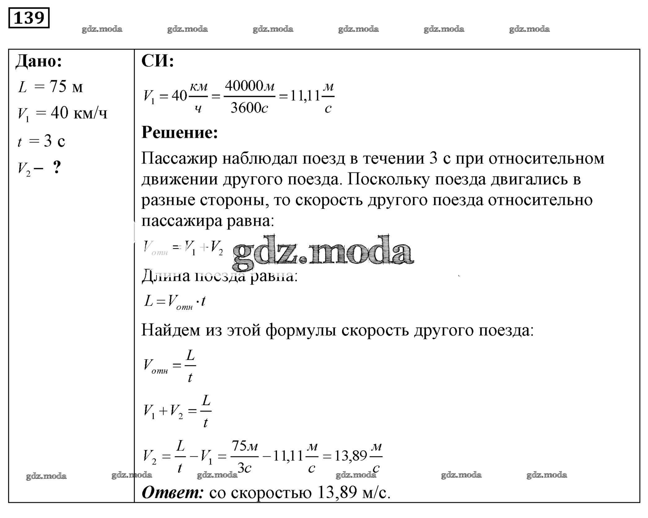 ОТВЕТ на задание № 139 Сборник задач по Физике 7-9 класс Лукашик