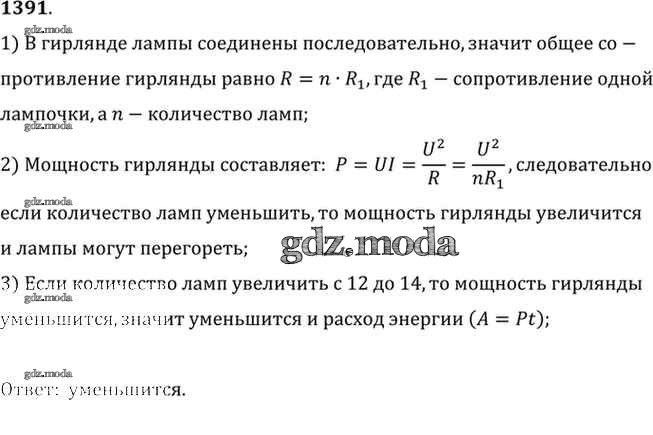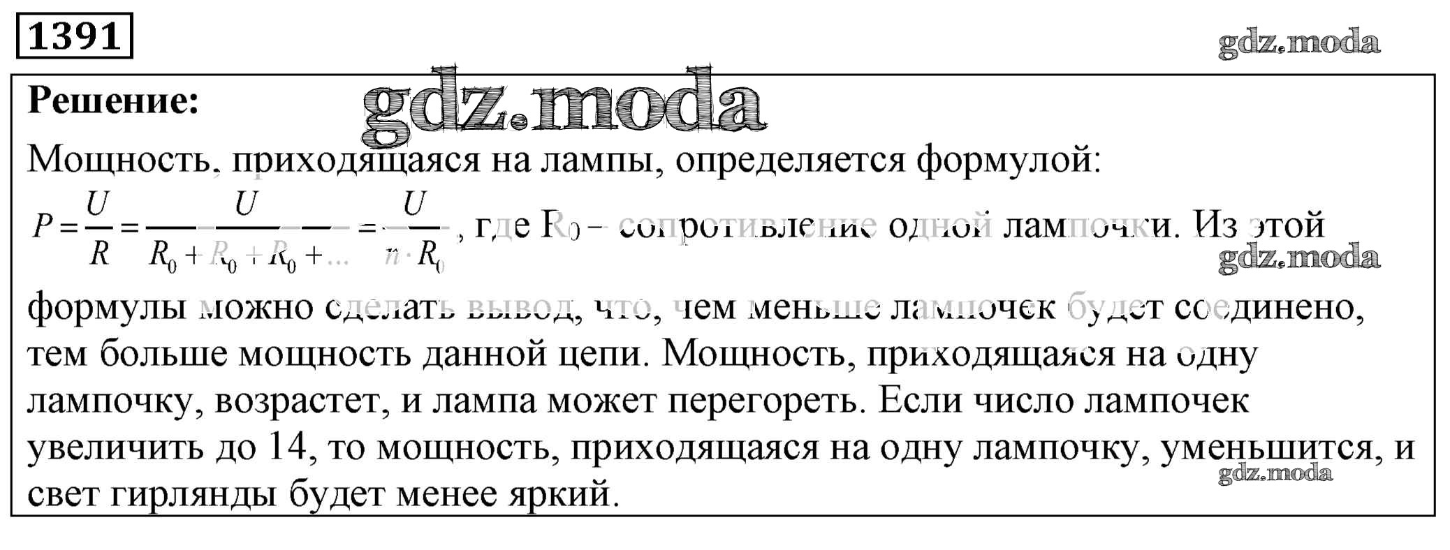 ОТВЕТ на задание № 1391 Сборник задач по Физике 7-9 класс Лукашик