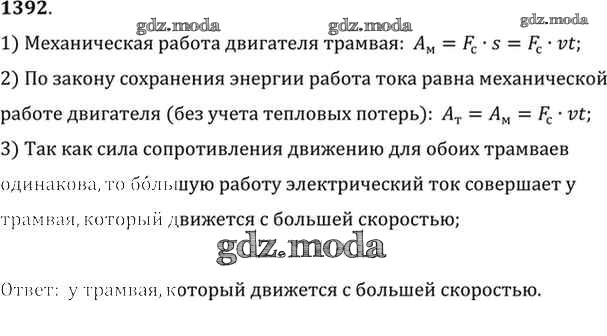ОТВЕТ на задание № 1392 Сборник задач по Физике 7-9 класс Лукашик