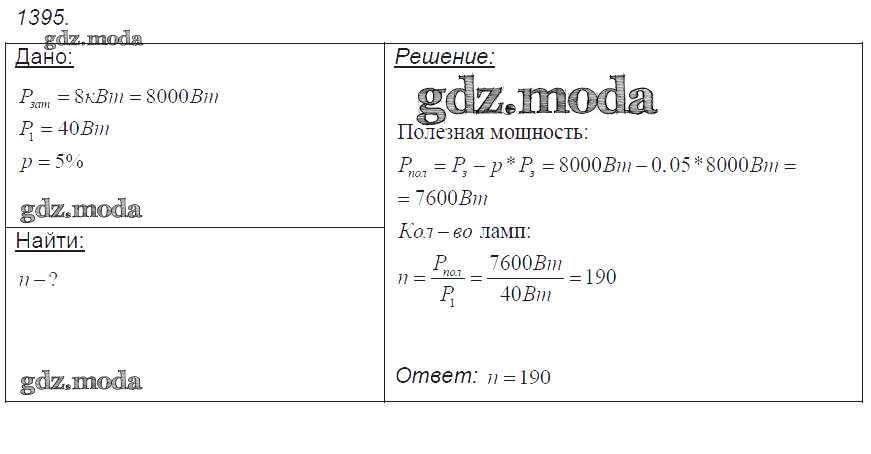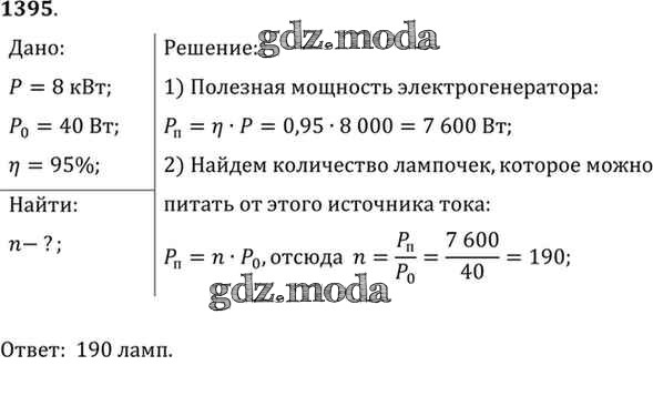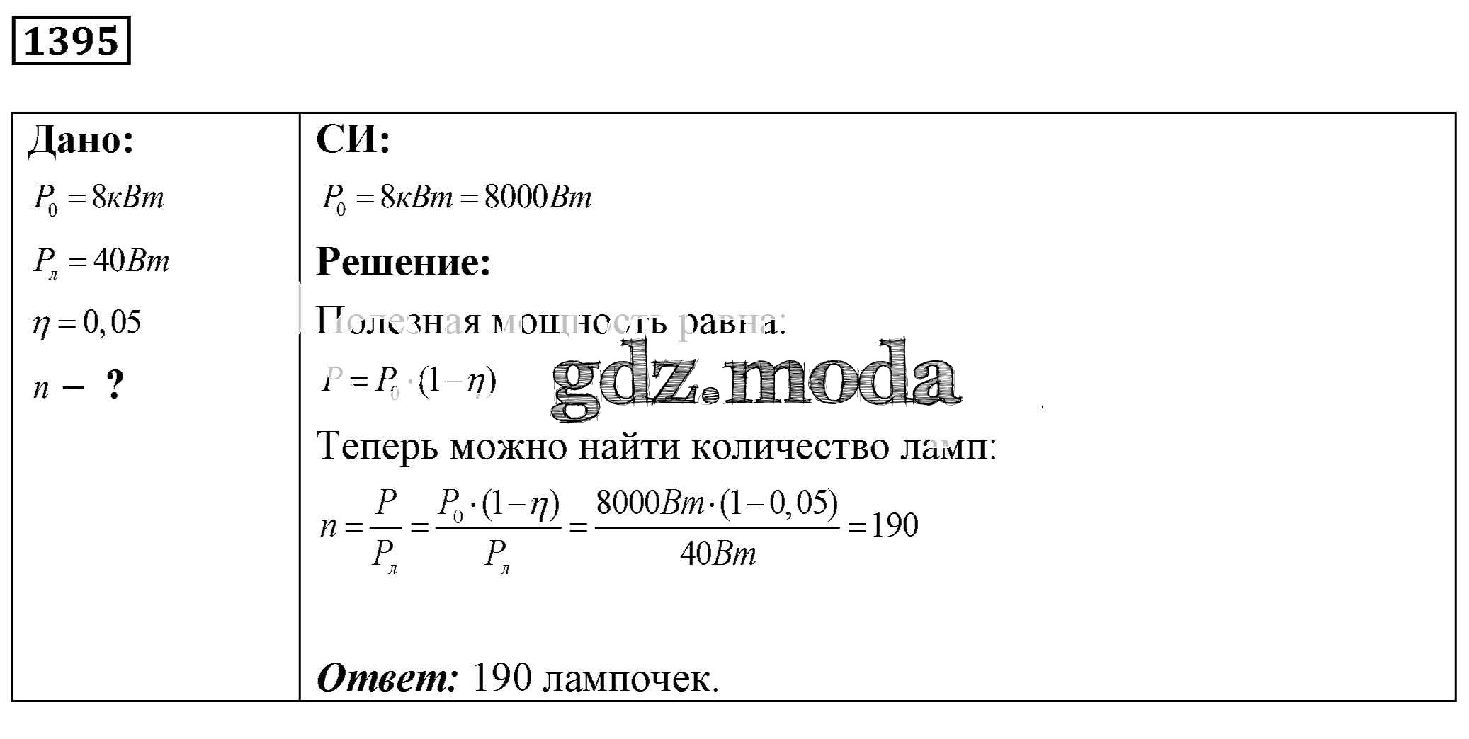 ОТВЕТ на задание № 1395 Сборник задач по Физике 7-9 класс Лукашик